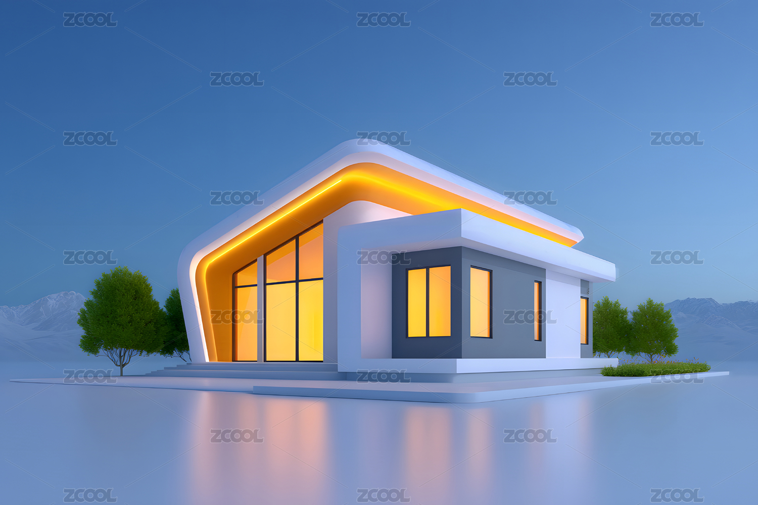 现代小屋的3D渲染图