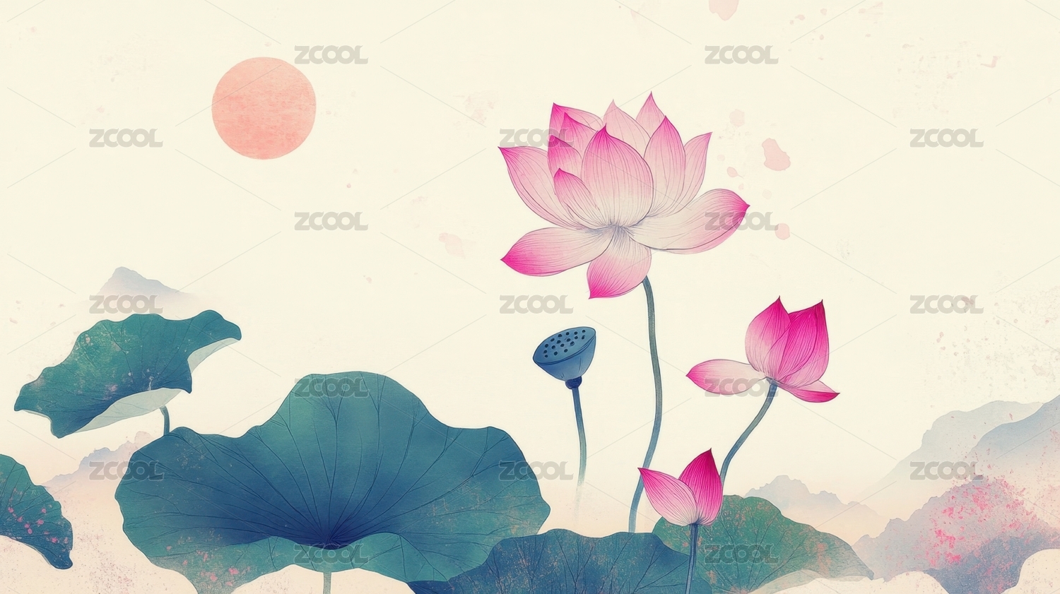 水墨莲花图背景