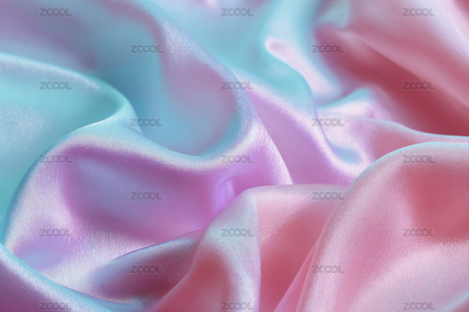 柔滑丝质面料的粉色与蓝色交织