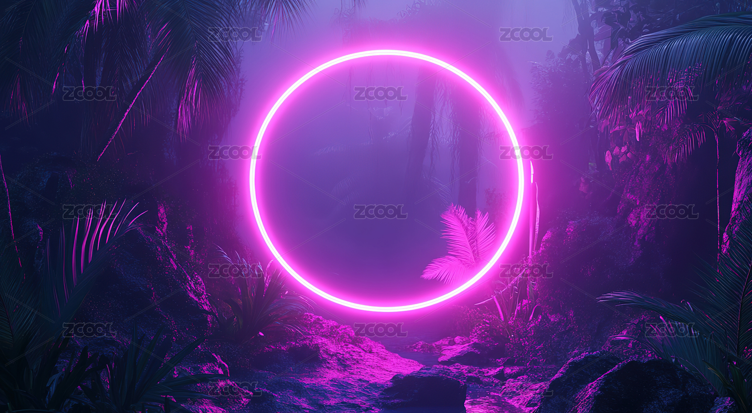 霓虹圆环森系感背景场景