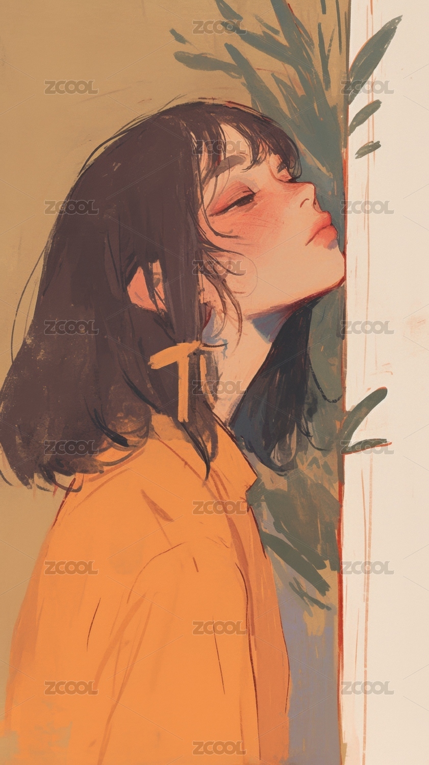 自然,现代,插画,卡通,漫画,光影,女子,耳环,温馨,温暖