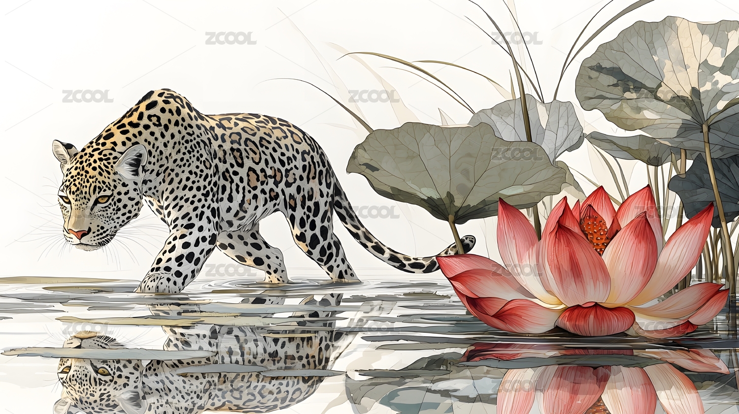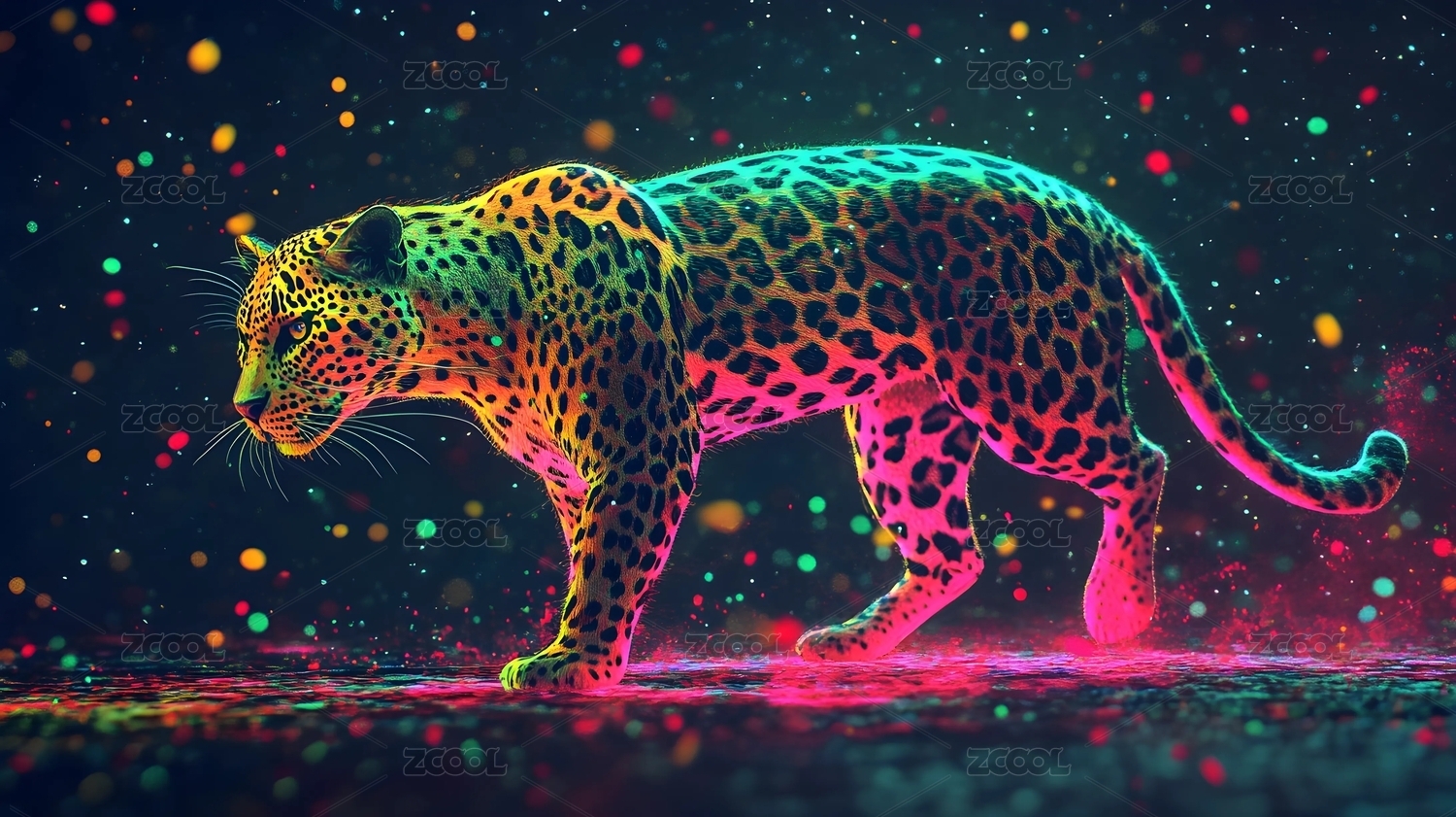 潮流嘻哈暗黑金钱豹T恤装饰图案