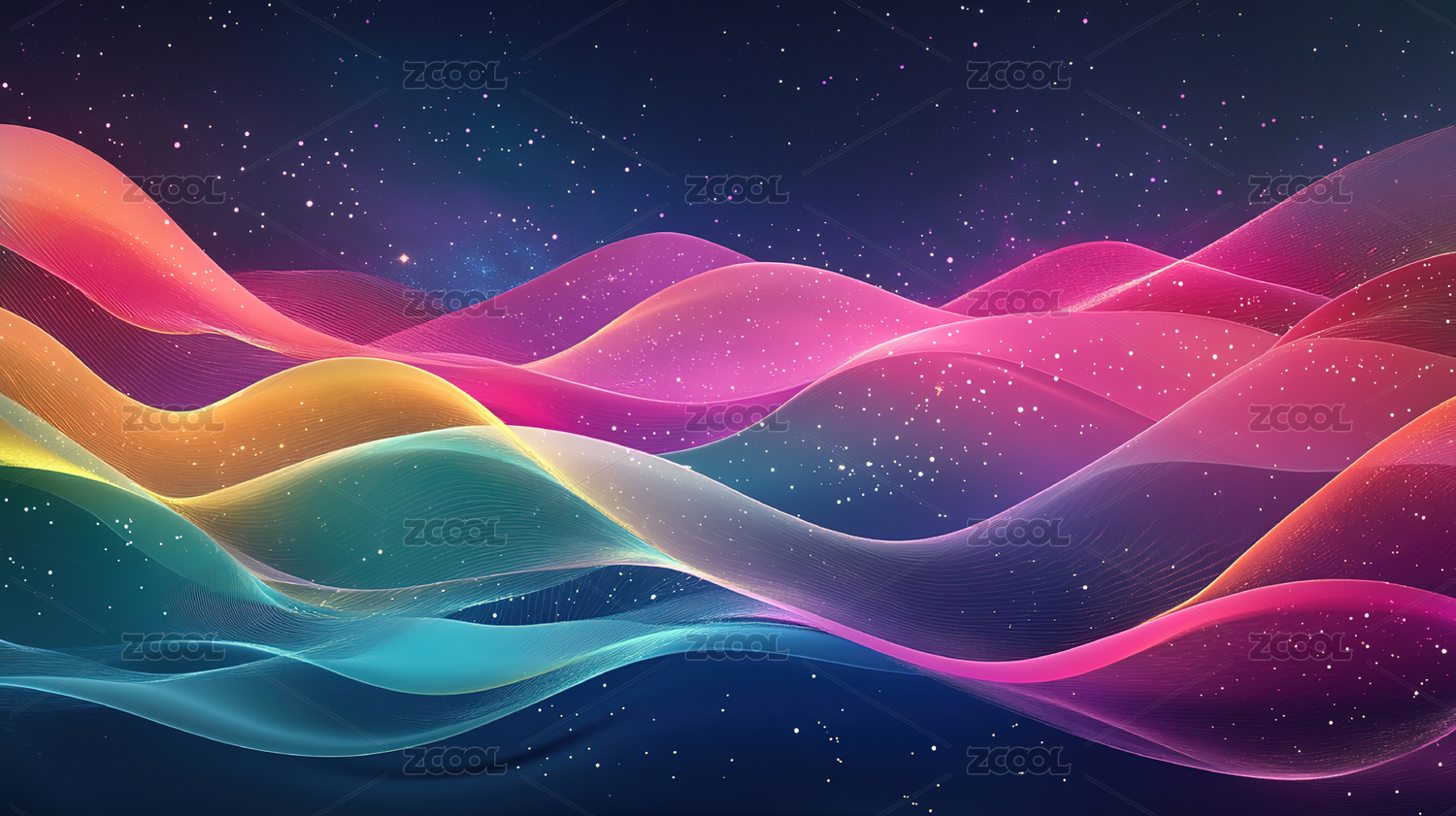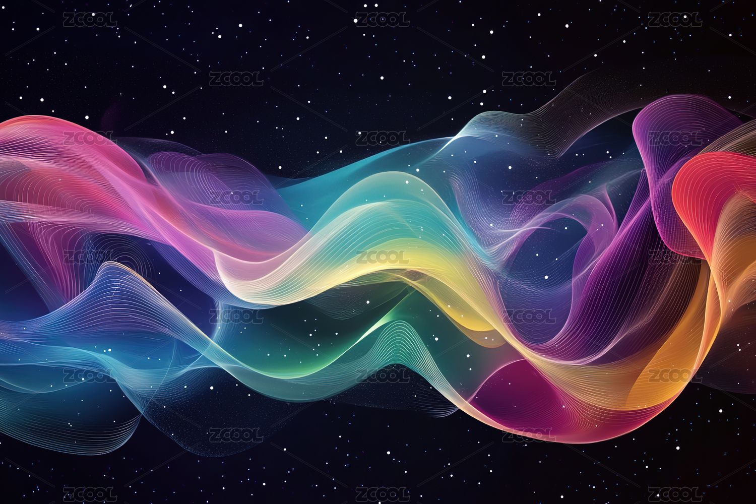 炫彩丝带飘舞星空背景,充满梦幻科技感
