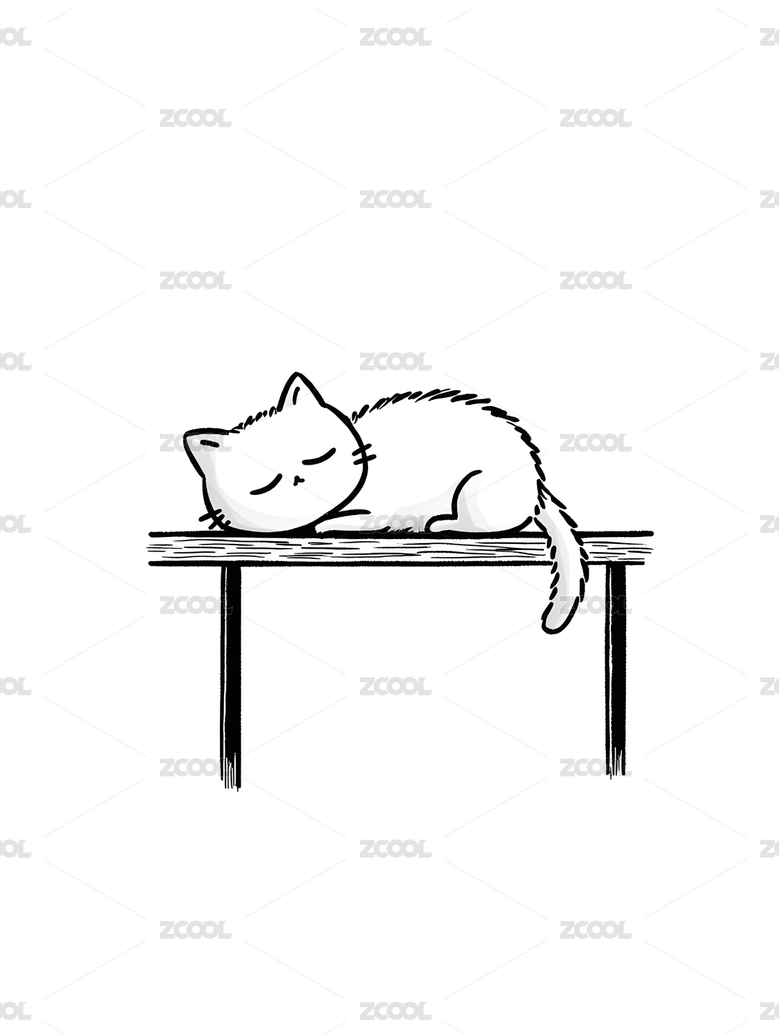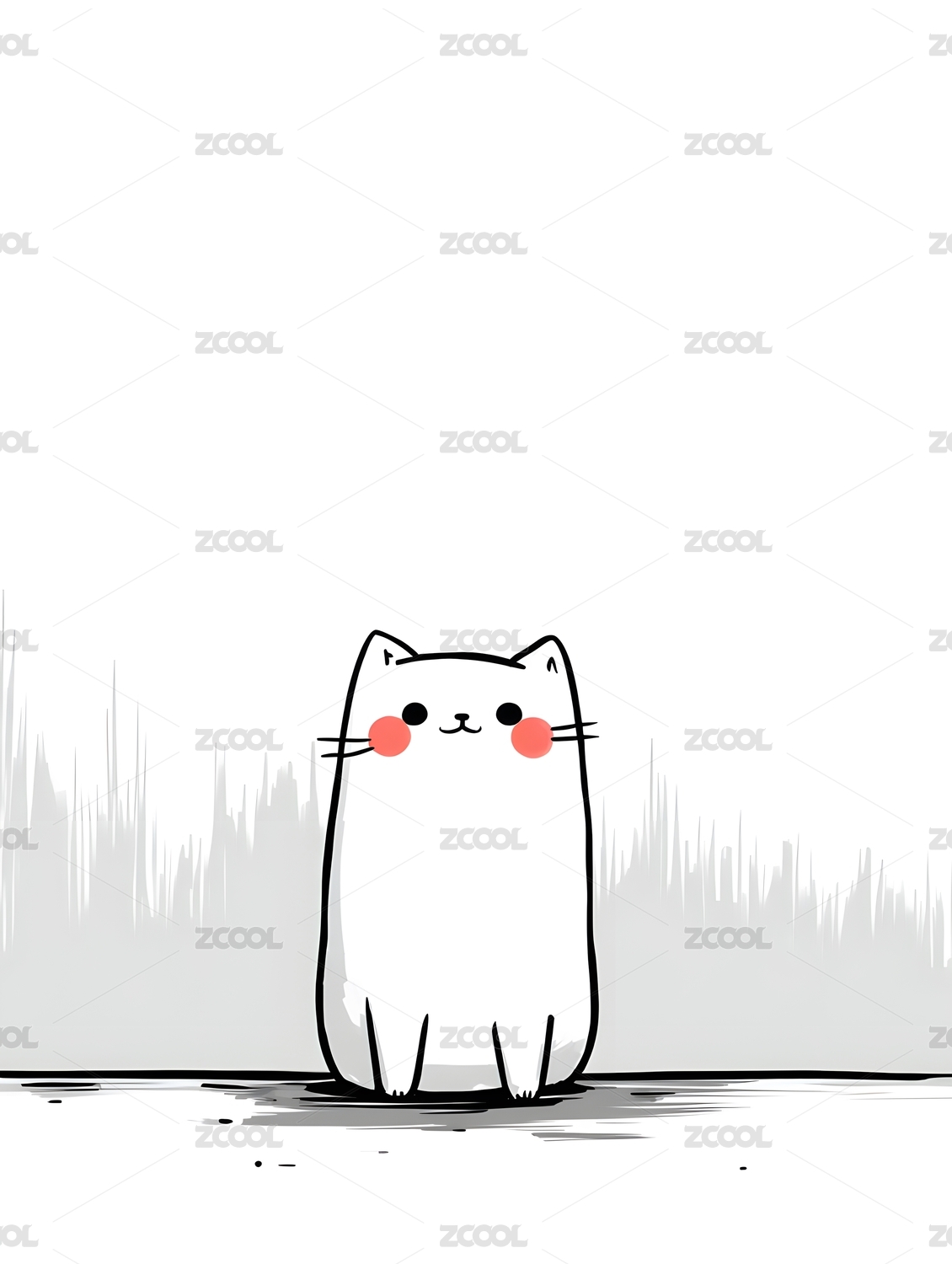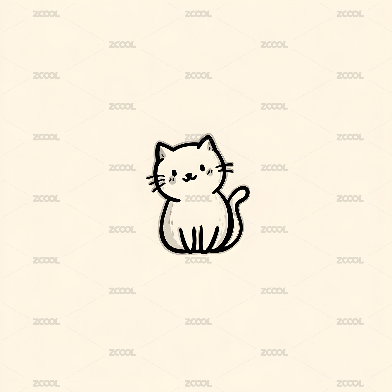 猫,猫咪,线条,眼睛,胡须,背景,简洁,画面,黑白,坐姿