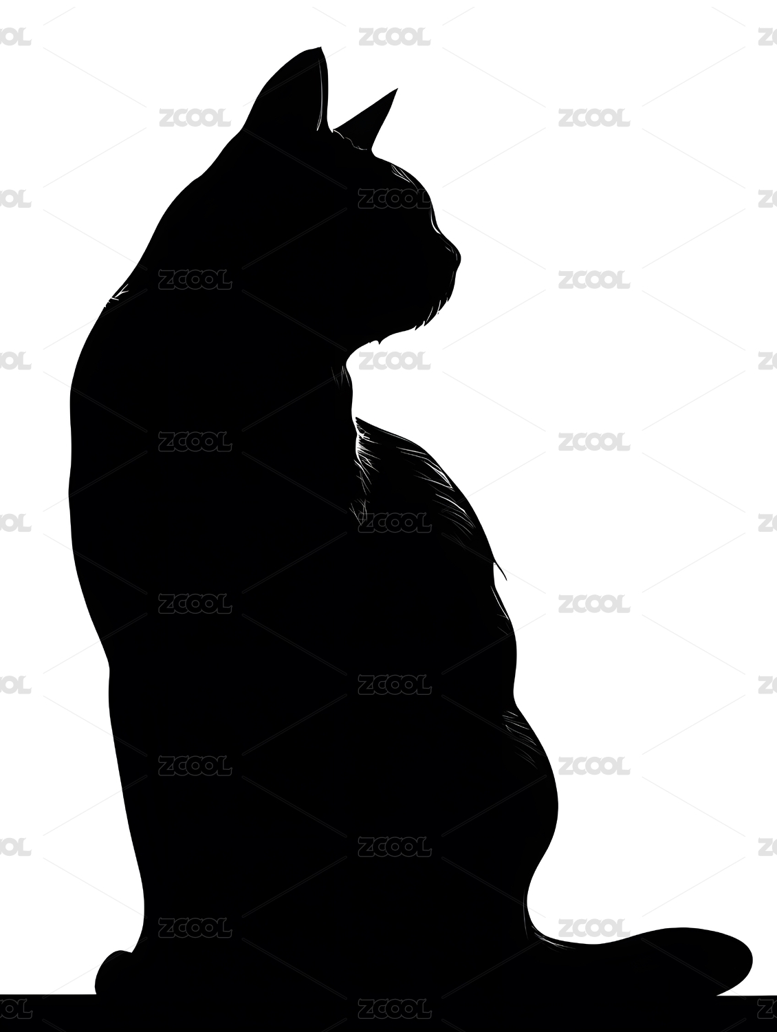 猫,胡须,背景,黑色,白色,坐姿,尾巴,安静,轮廓,形象