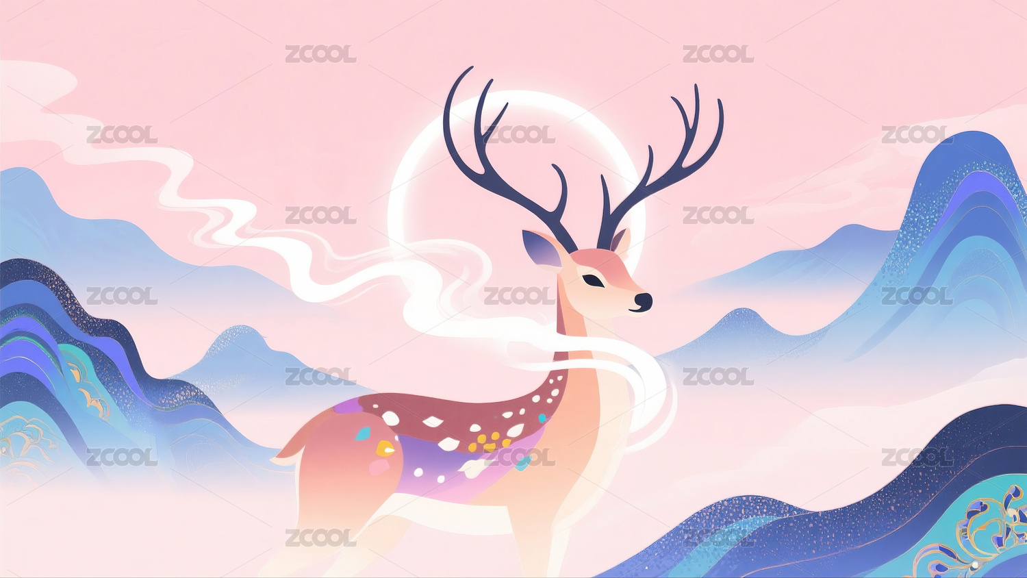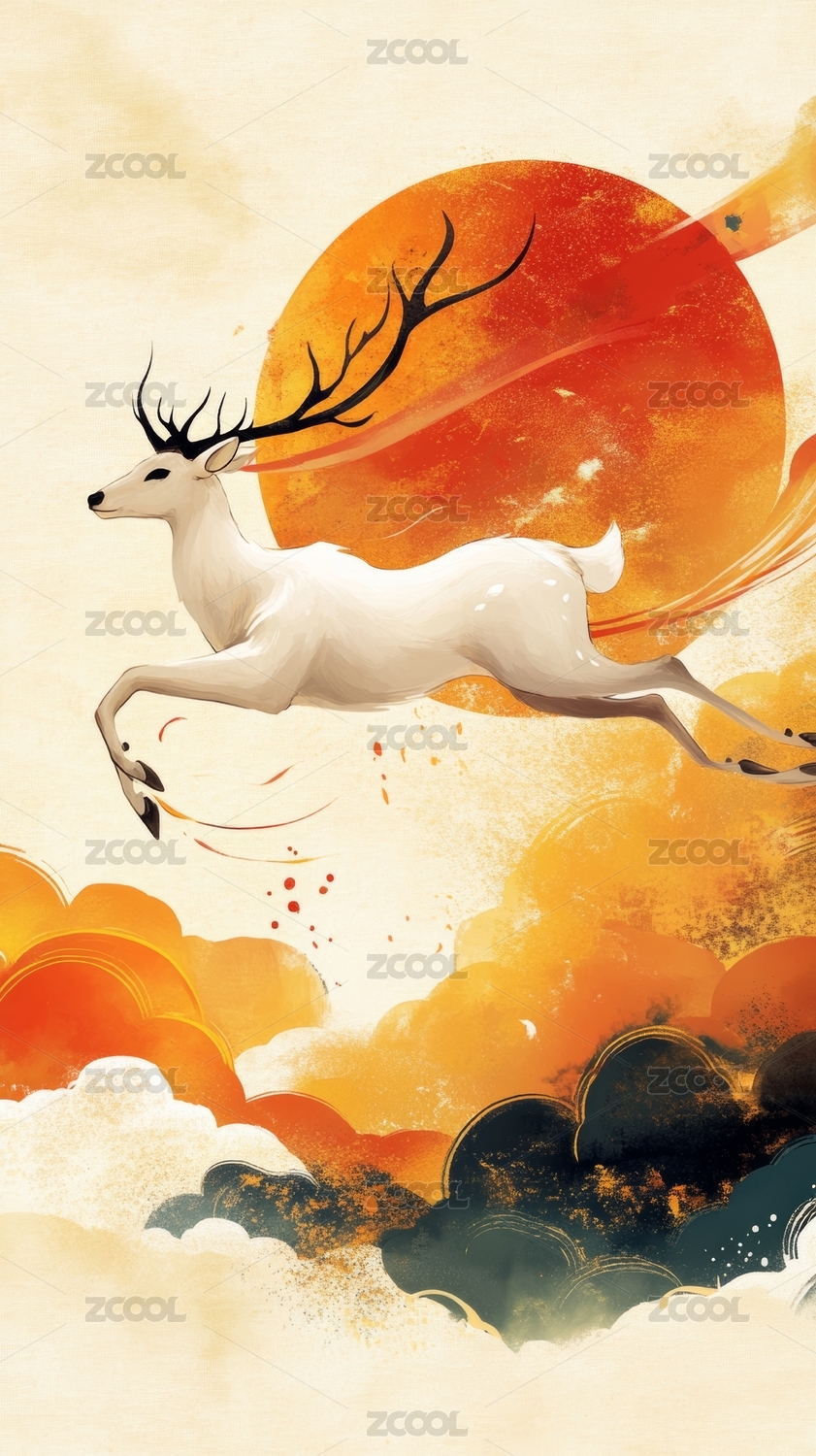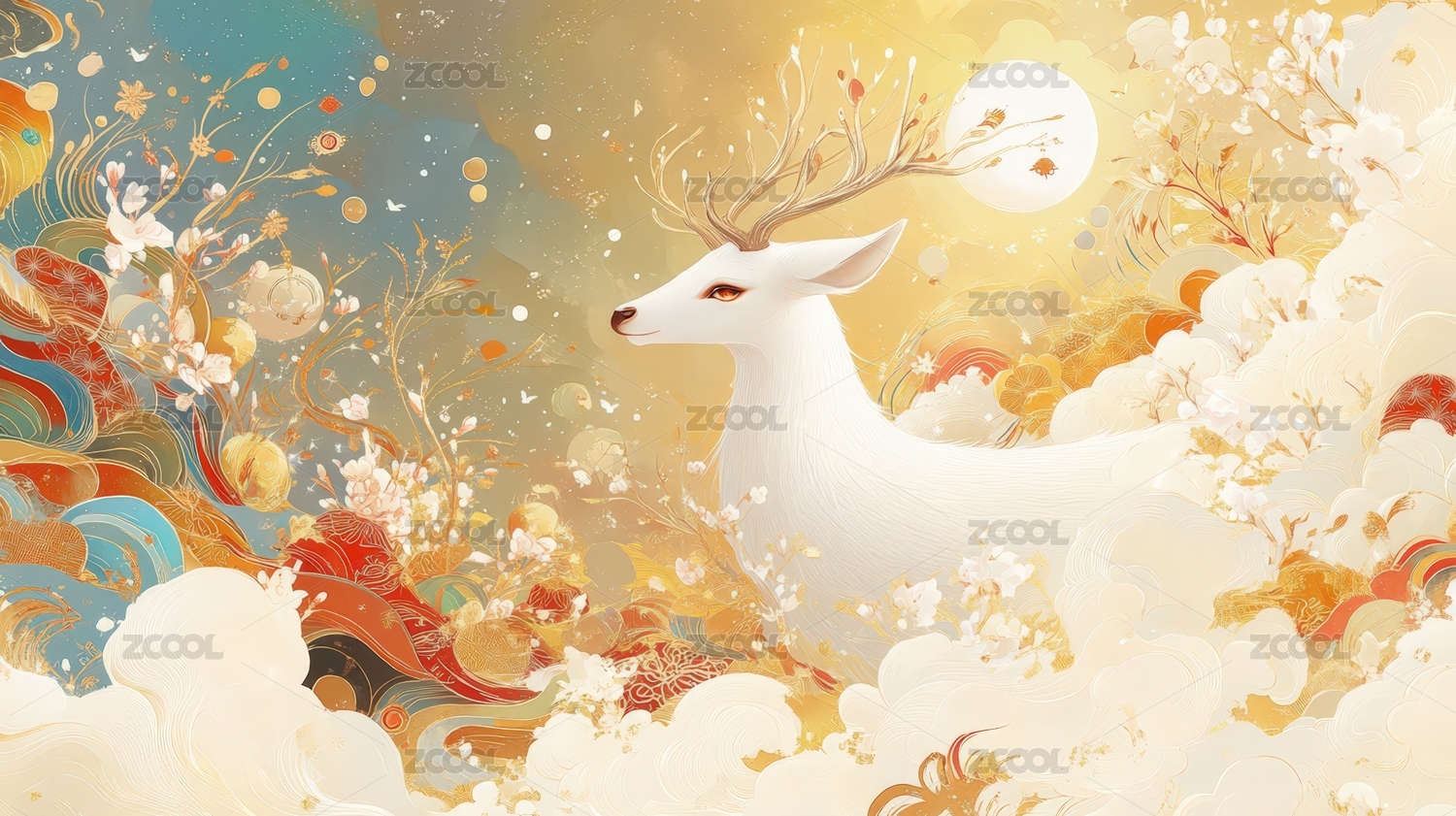 鹿,白鹿,神兽,中国风,国潮,国风,古风,祥瑞,云朵,云彩