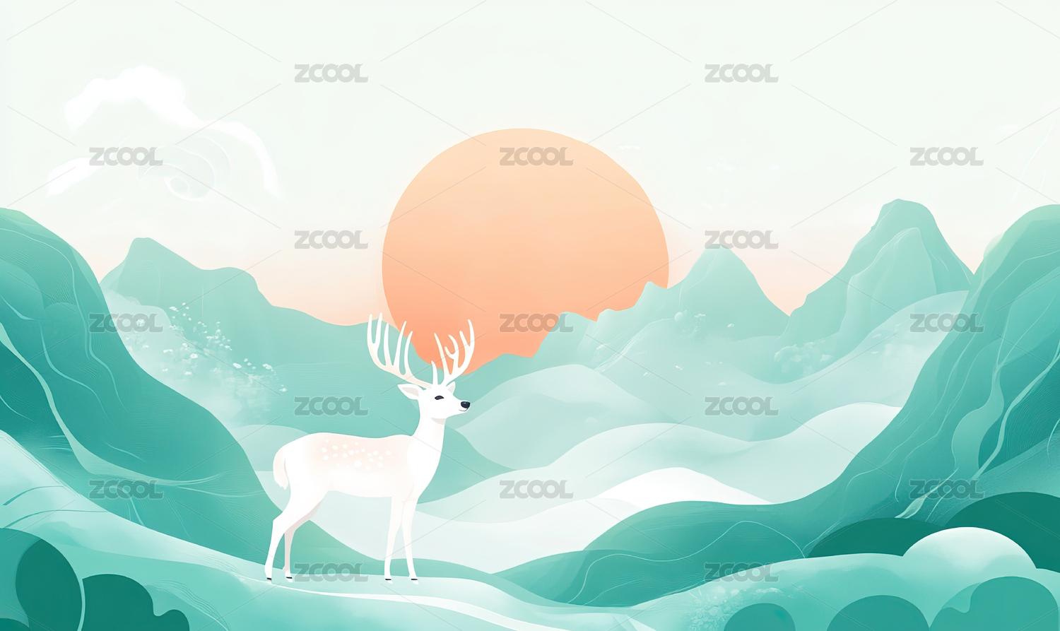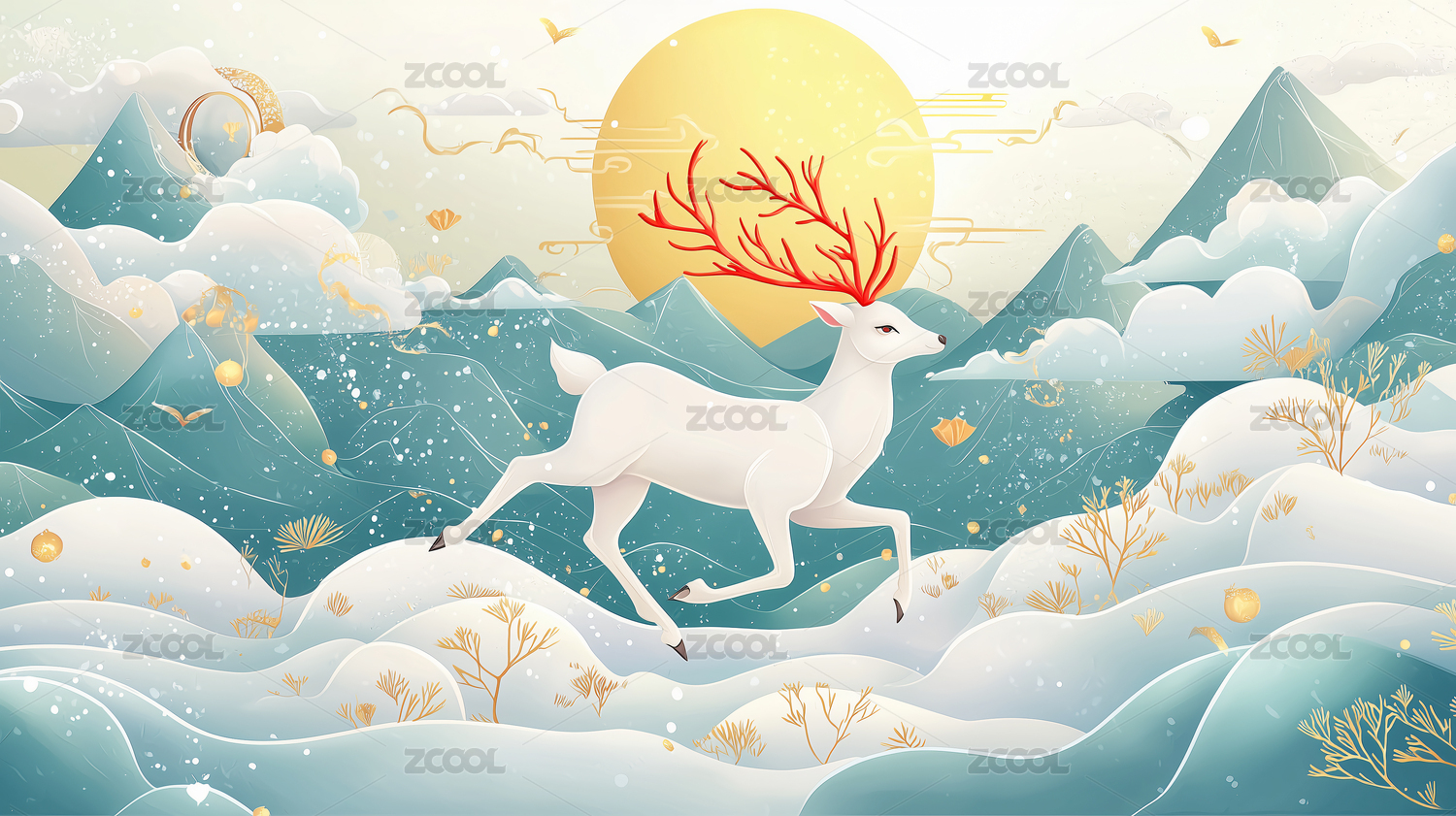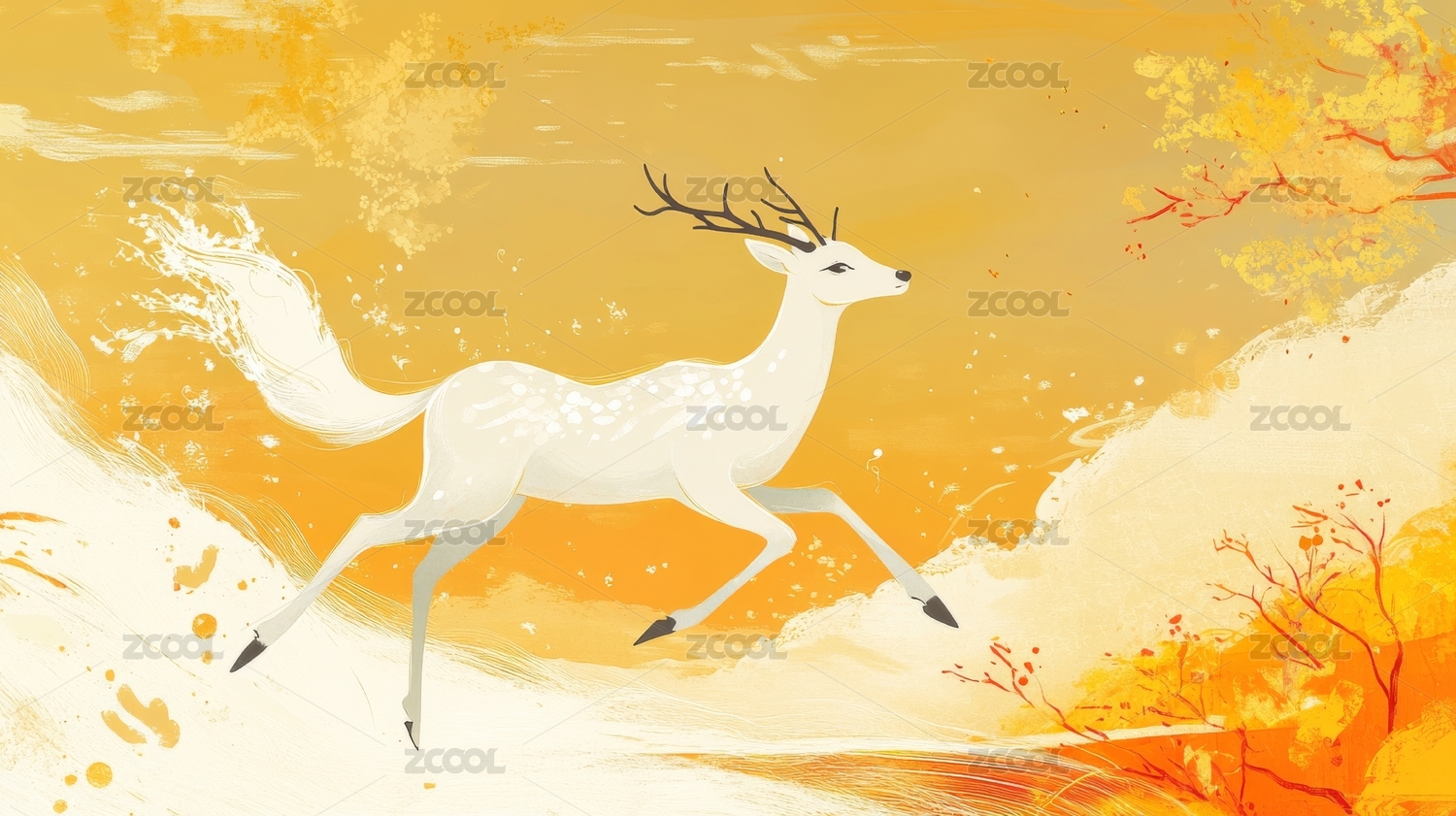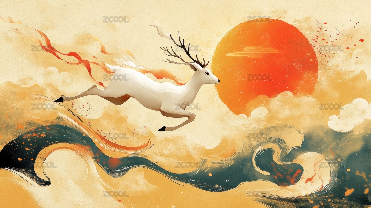 鹿,白鹿,神兽,中国风,国潮,国风,古风,祥瑞,云朵,云彩