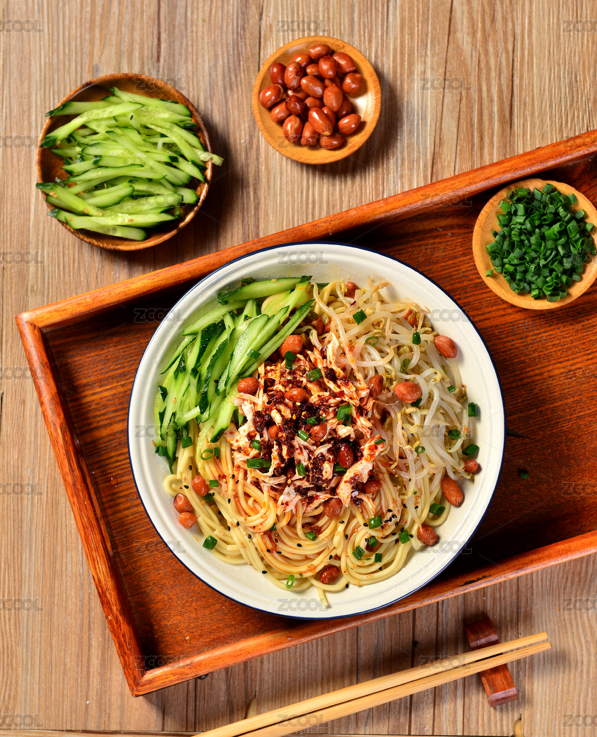 小吃,凉面,鸡丝凉面,红油鸡丝凉面,午餐,面食,面条,红油凉面