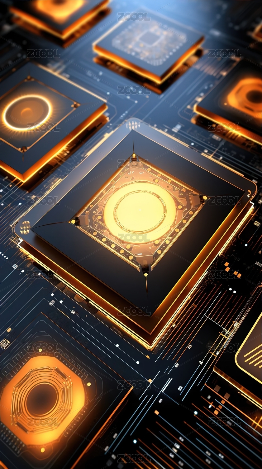电路板中央特写黄金芯片科技感十足