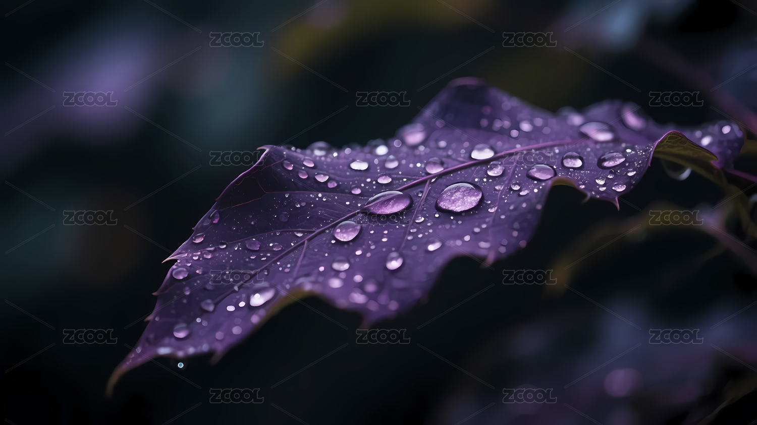 深紫色带水滴的叶子