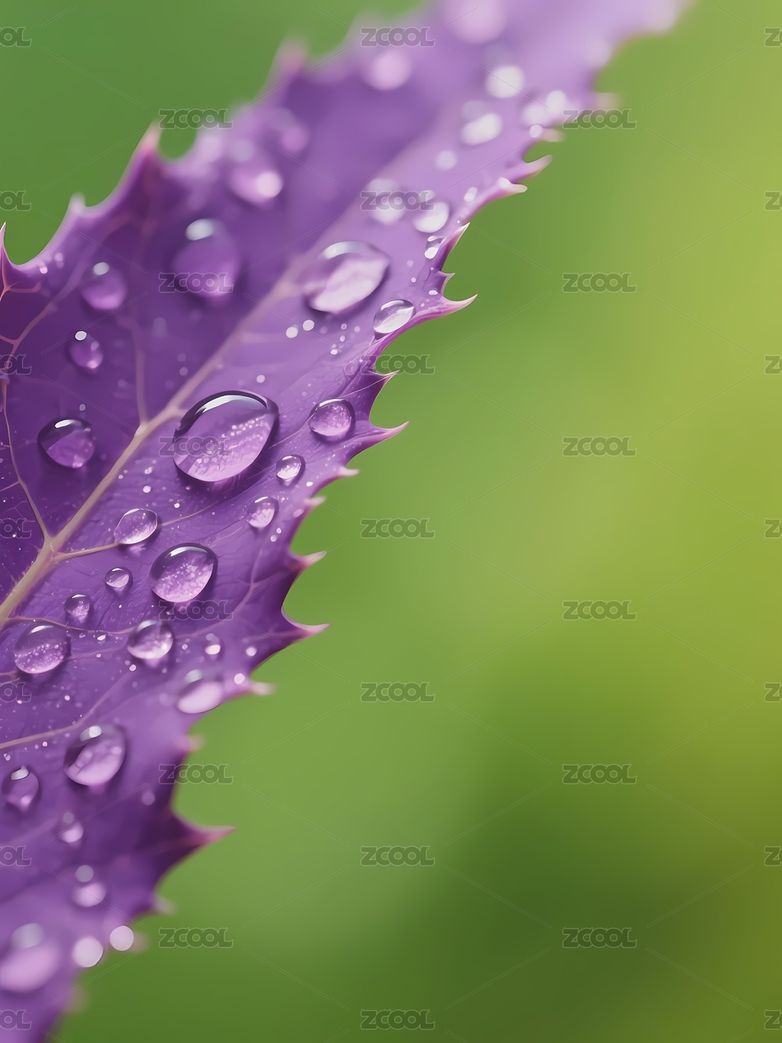 紫色叶子带水滴自然图