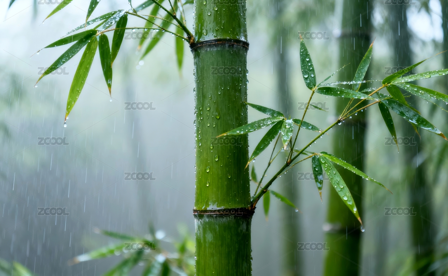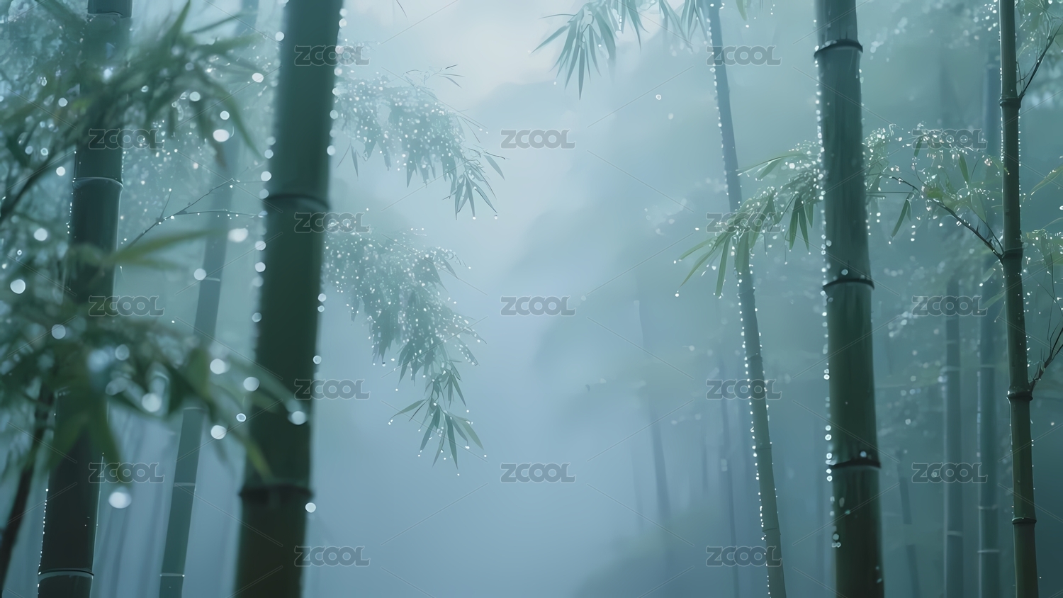雨后竹林水珠点缀