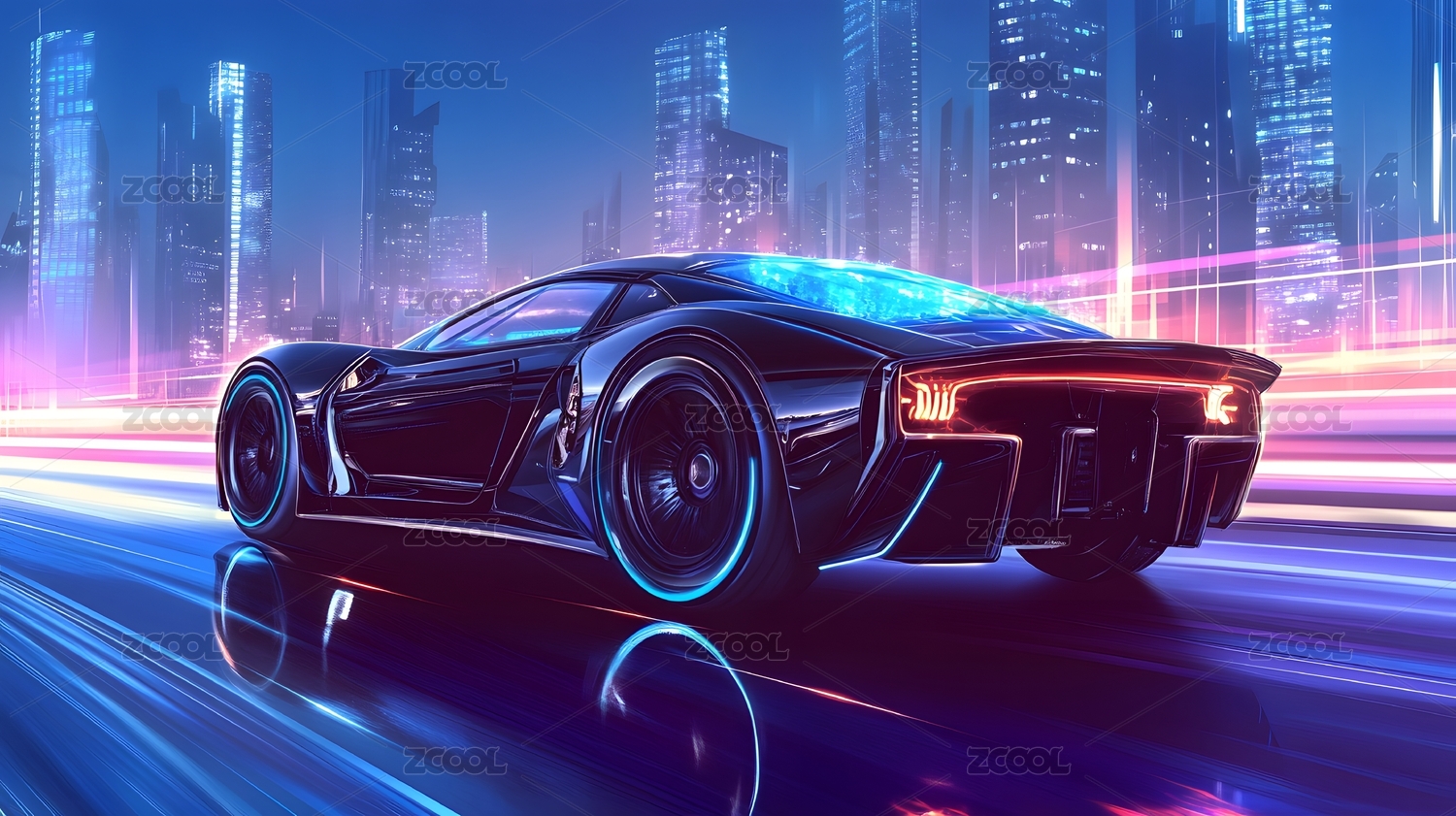 未来,城市,新能源,光束,轨迹,天际线,道路,交通,行驶,汽车