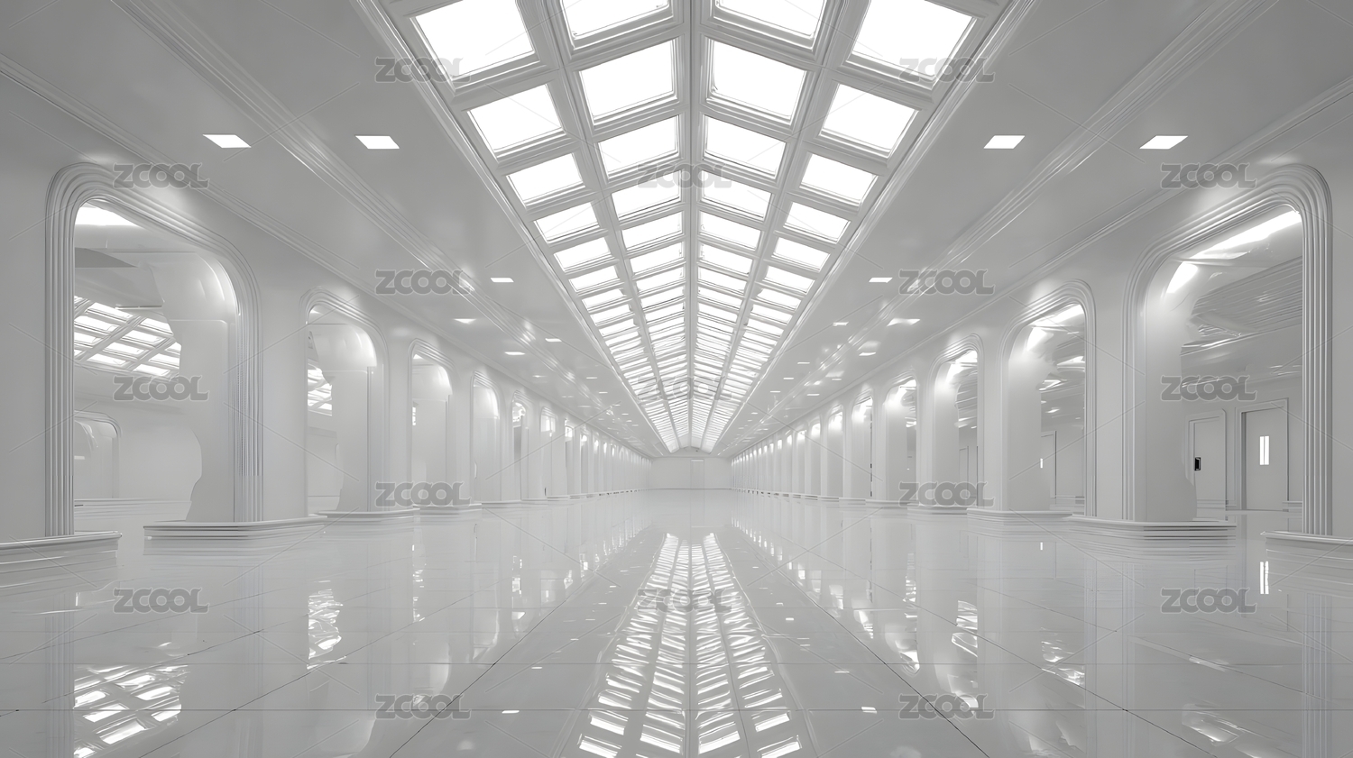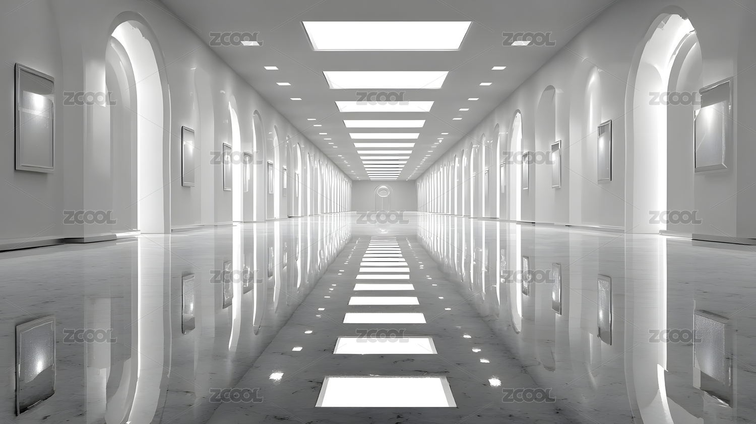走廊,灯光,反射,地面,通道,现代,建筑,室内,设计,天花板
