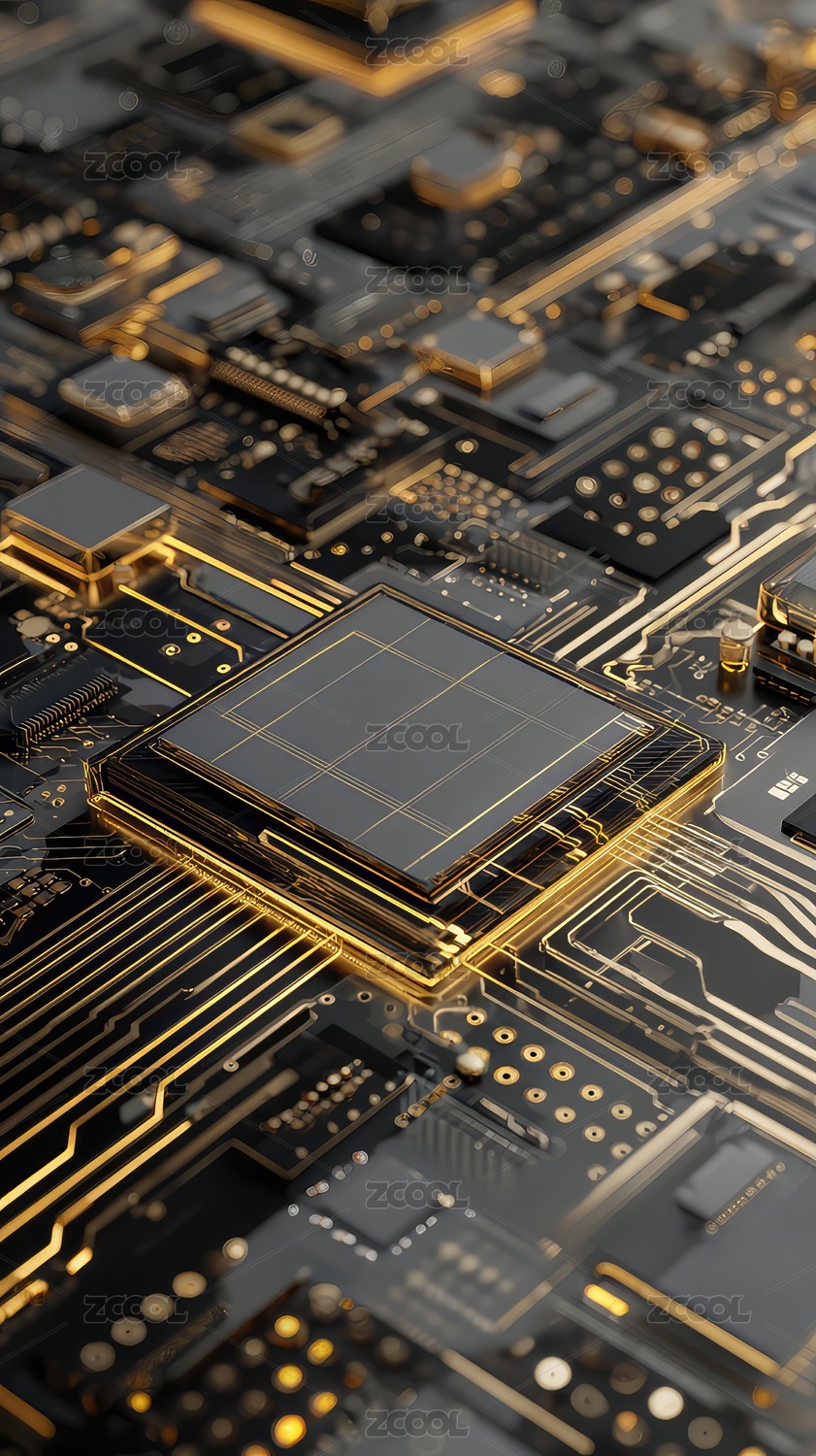 电路板特写金色芯片细节丰富
