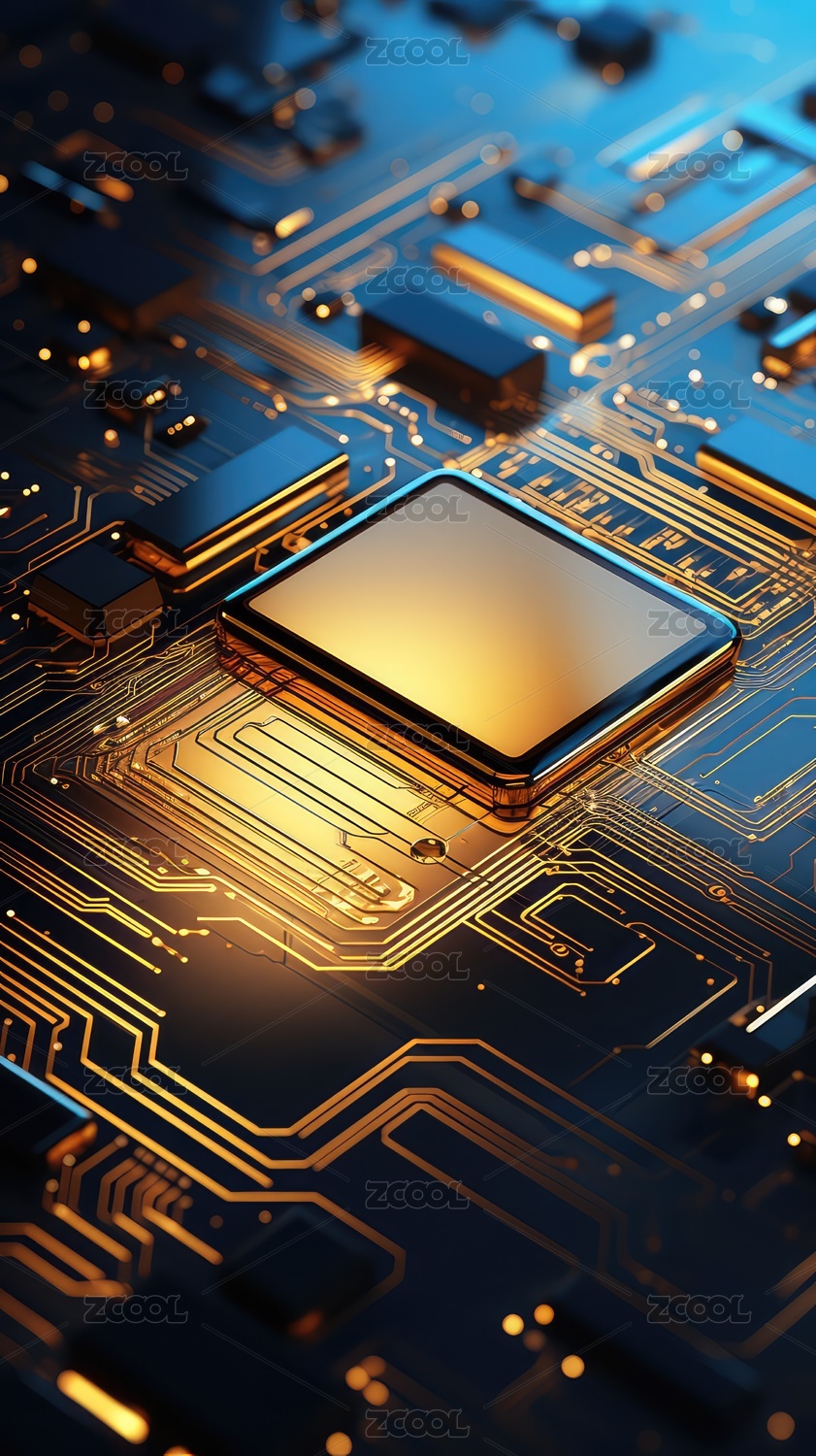金黄色芯片科技电路板