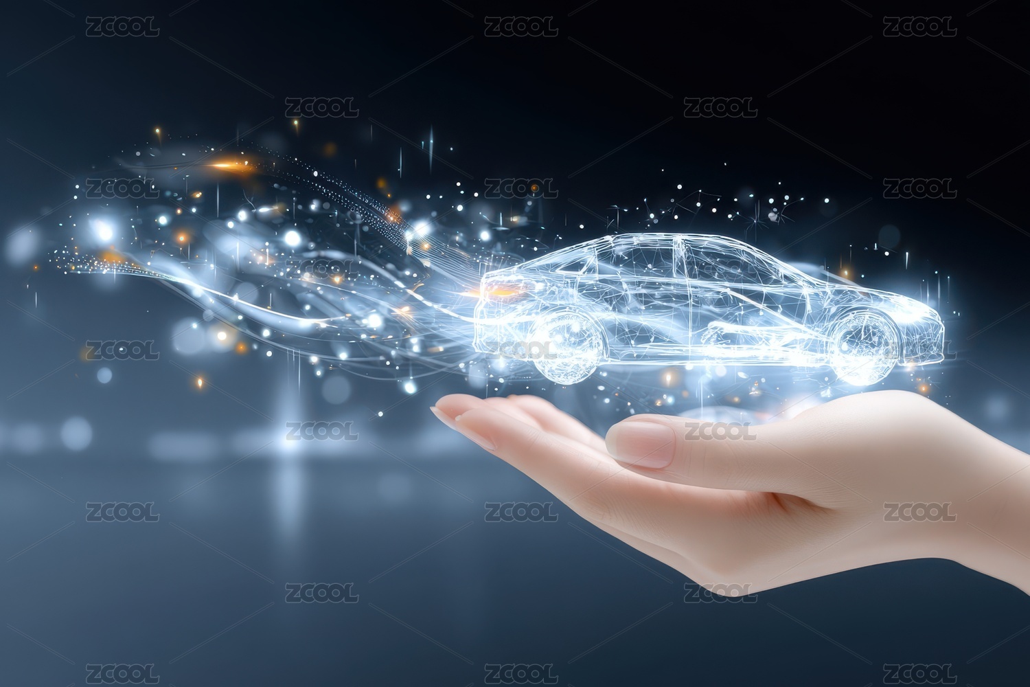 科技,未来,光影,汽车,手掌,粒子,发光,悬浮