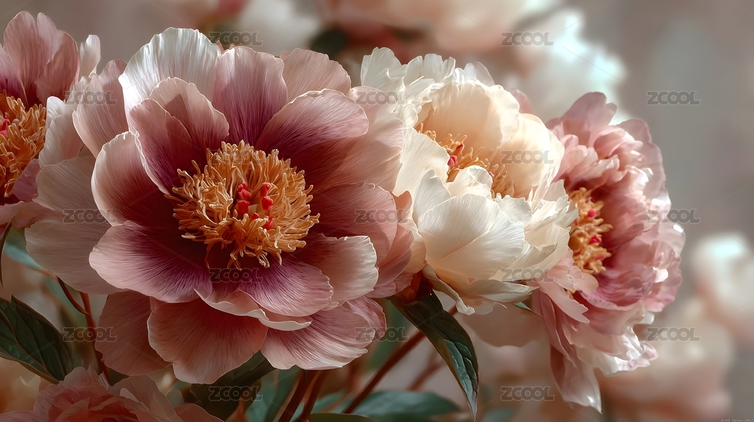 柔和梦幻的粉色牡丹花绽放