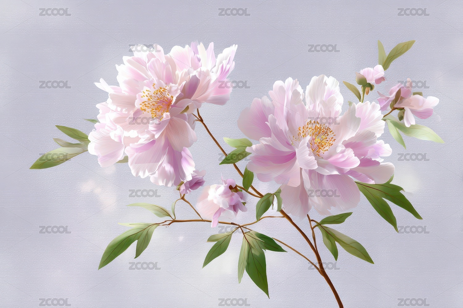 粉嫩花朵枝叶图