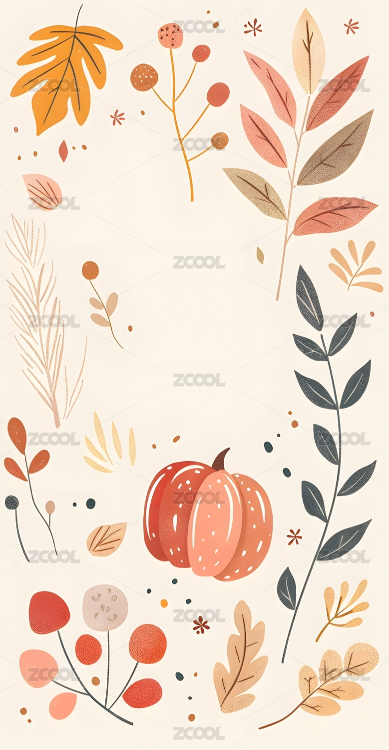 南瓜与秋叶插画