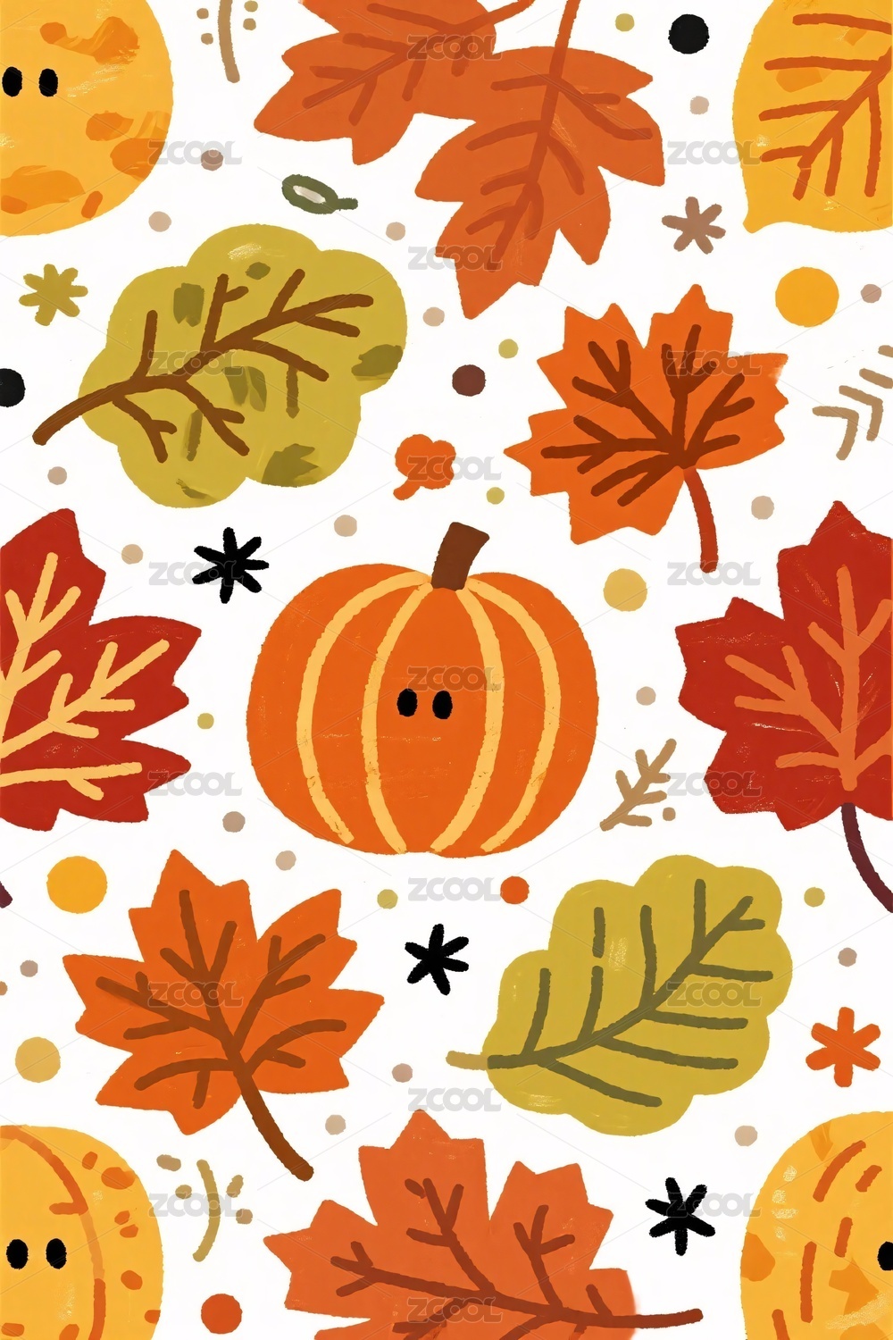 秋季南瓜树叶插画图案
