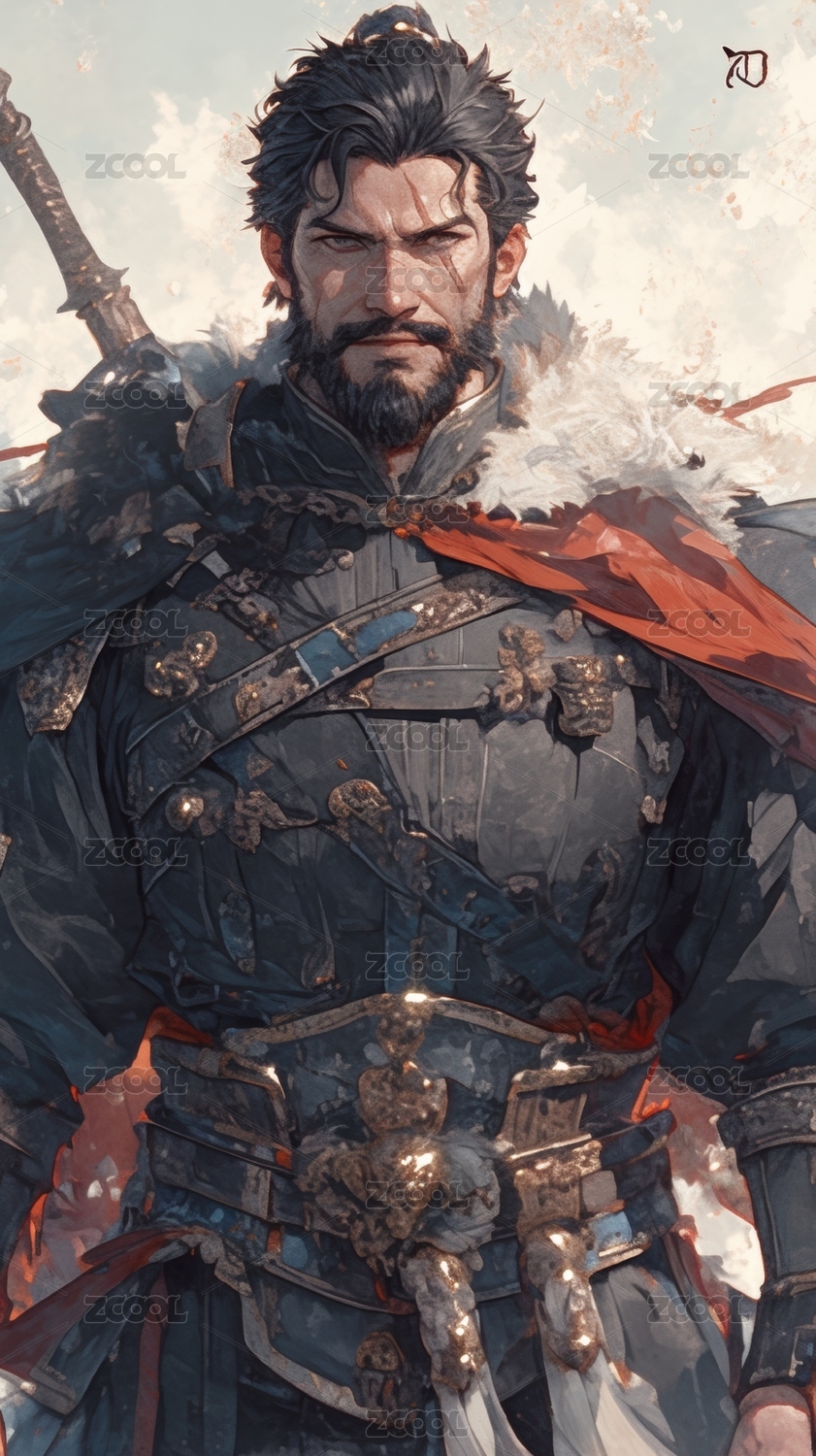 背景,插画,卡通,漫画,装饰,传统,武士,盔甲,披风,武器