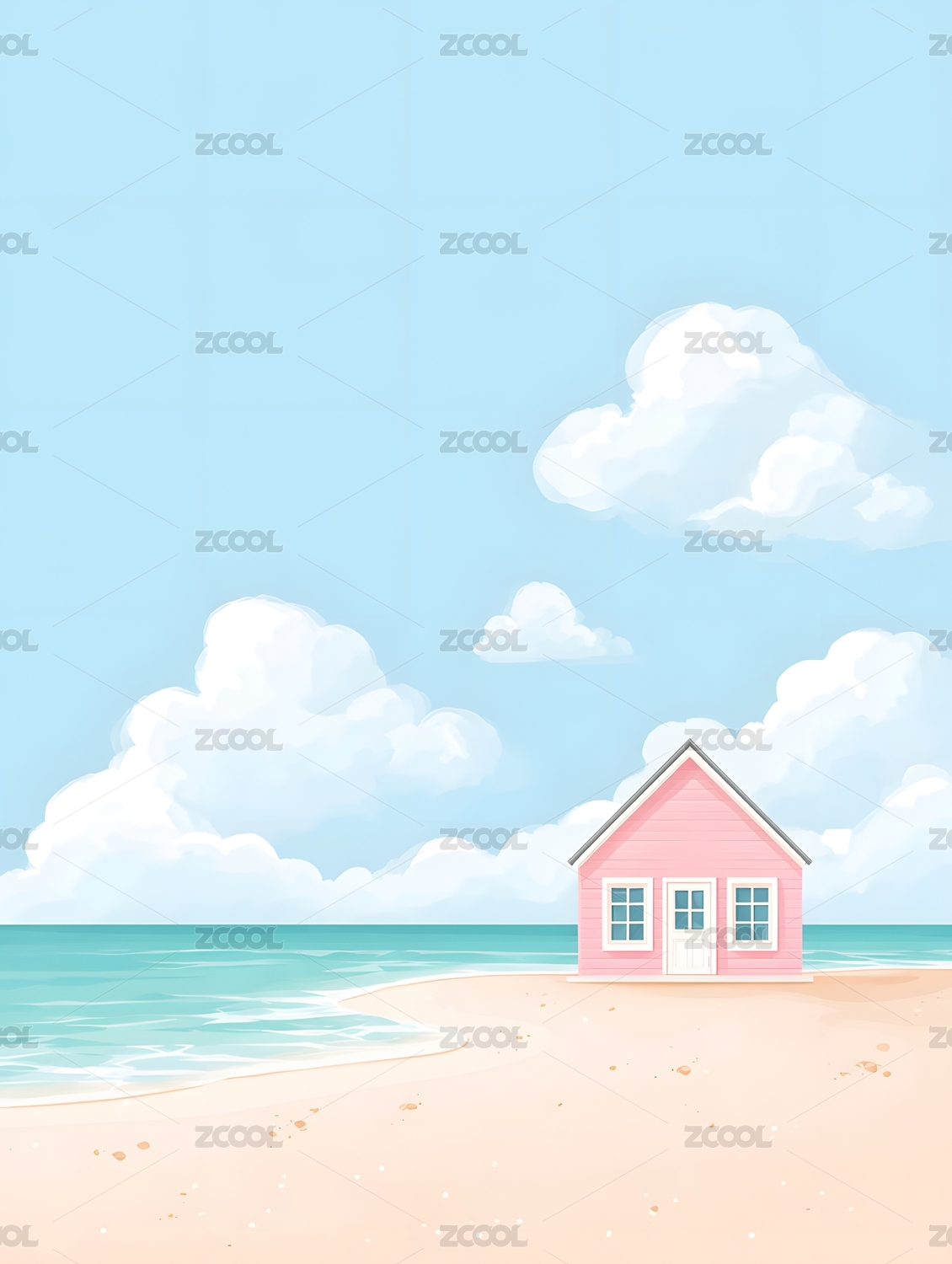 海边,蓝天,海滩,沙滩,海浪,大海,白云,草地,岩石,远山