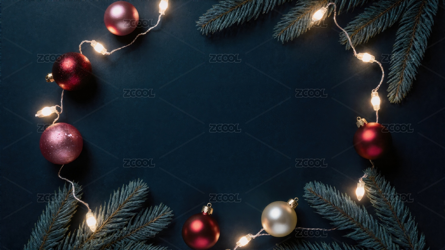 圣诞松枝金球装饰角