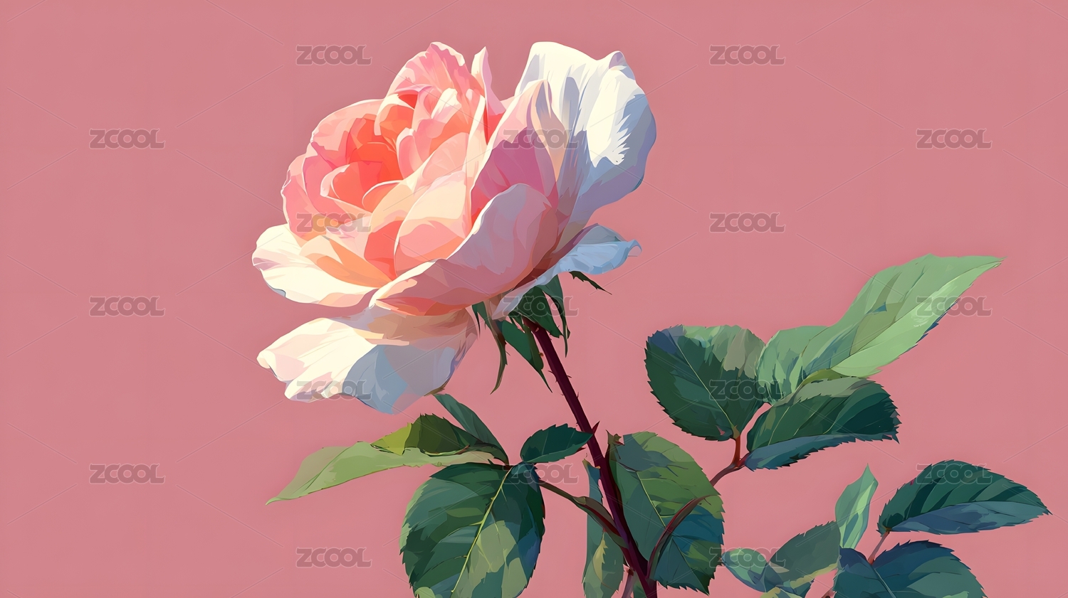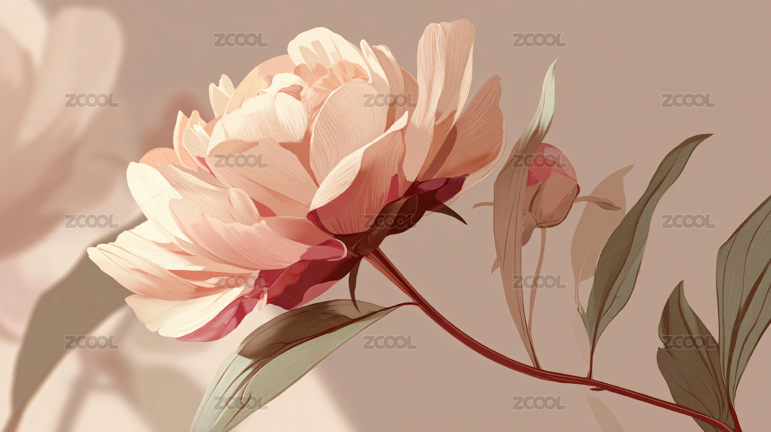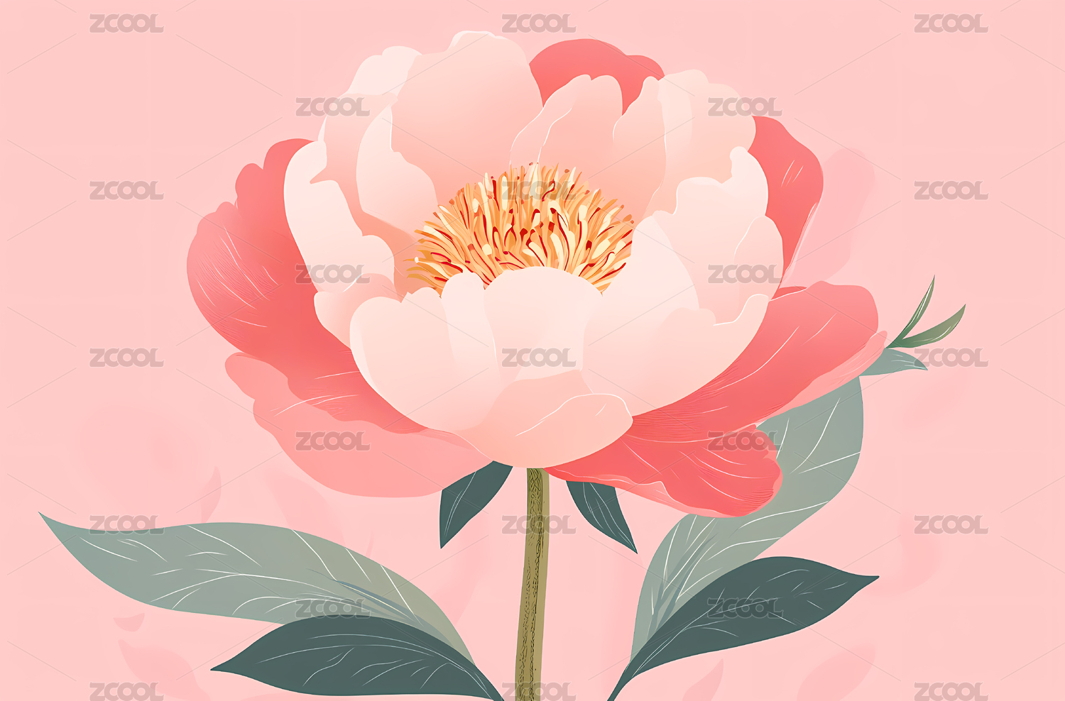 插画,牡丹,粉色,雅致,艺术,装饰,唯美,花卉,清新,画面