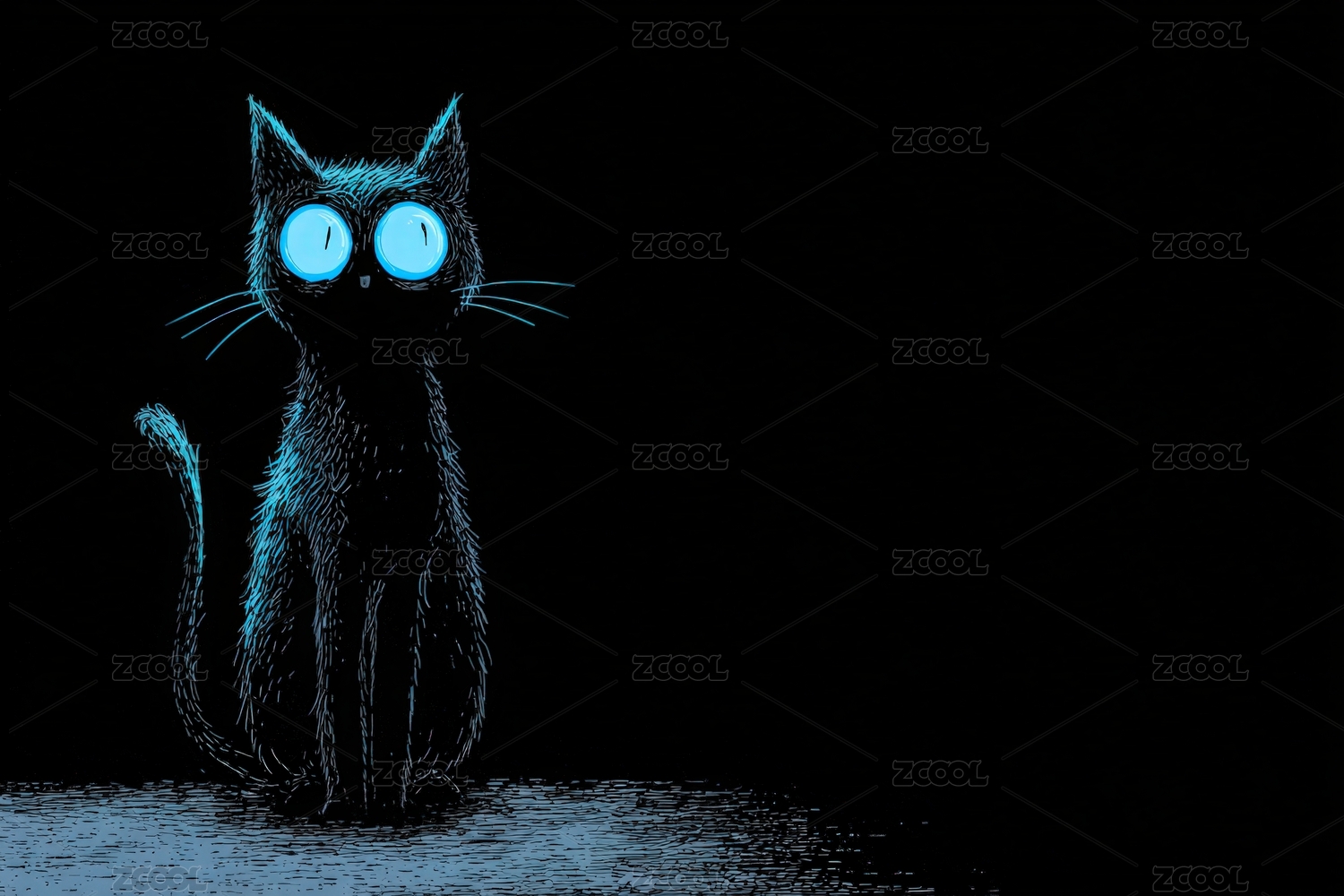 猫,简约,背景,黑猫,眼睛,尾巴,光影,姿态,项圈,线条