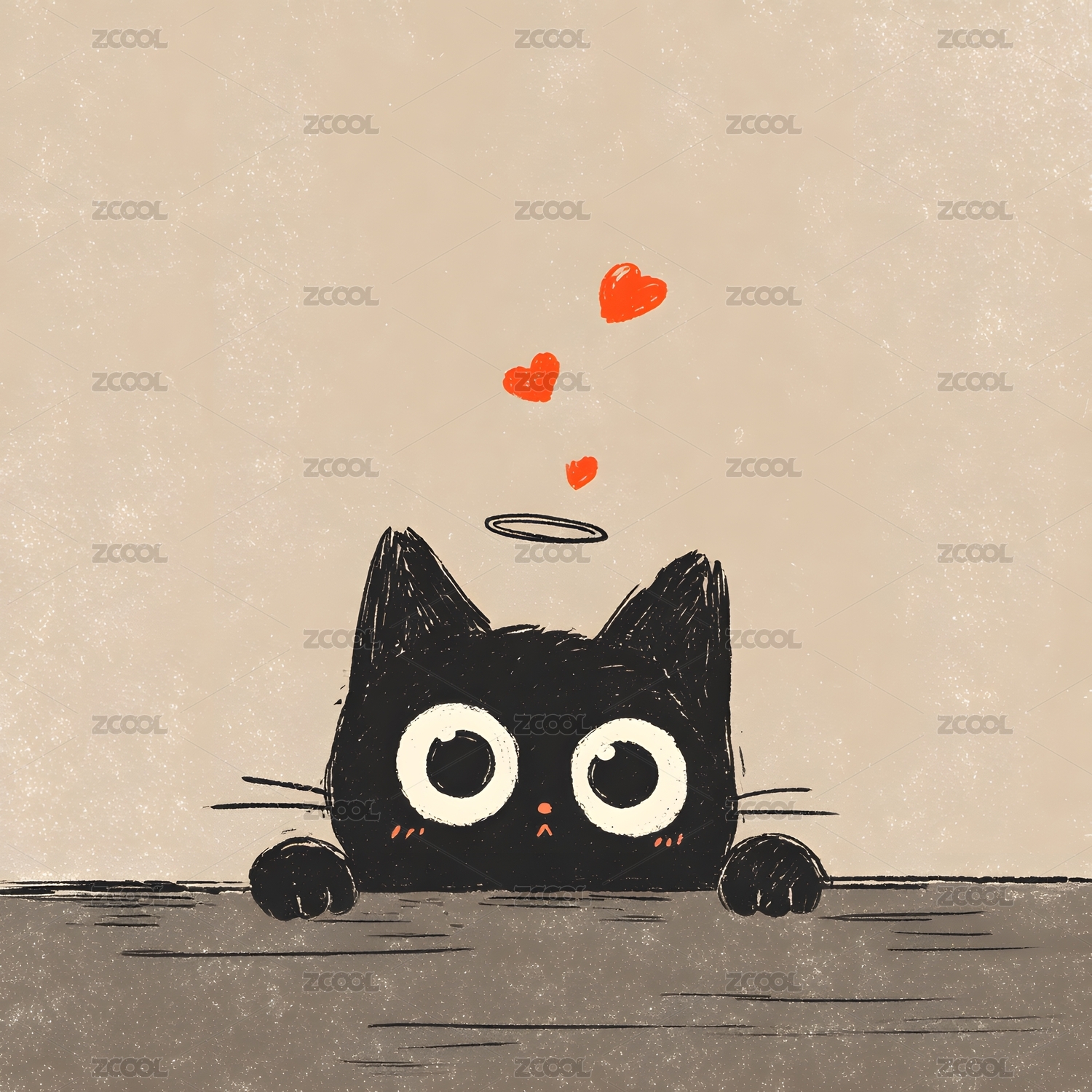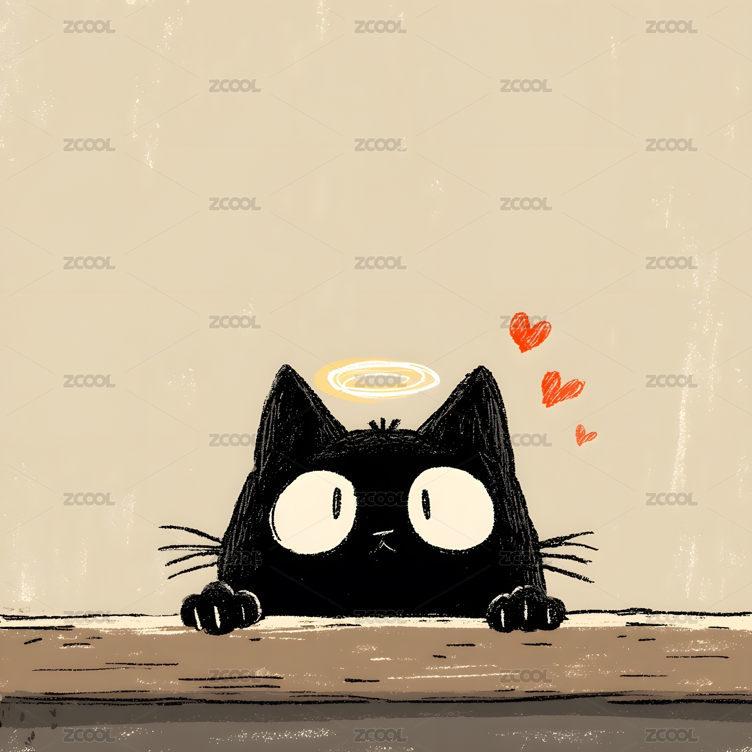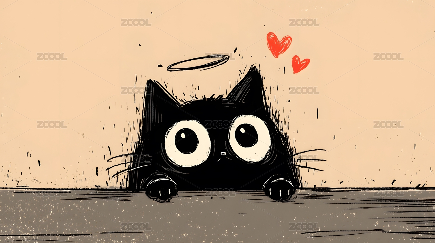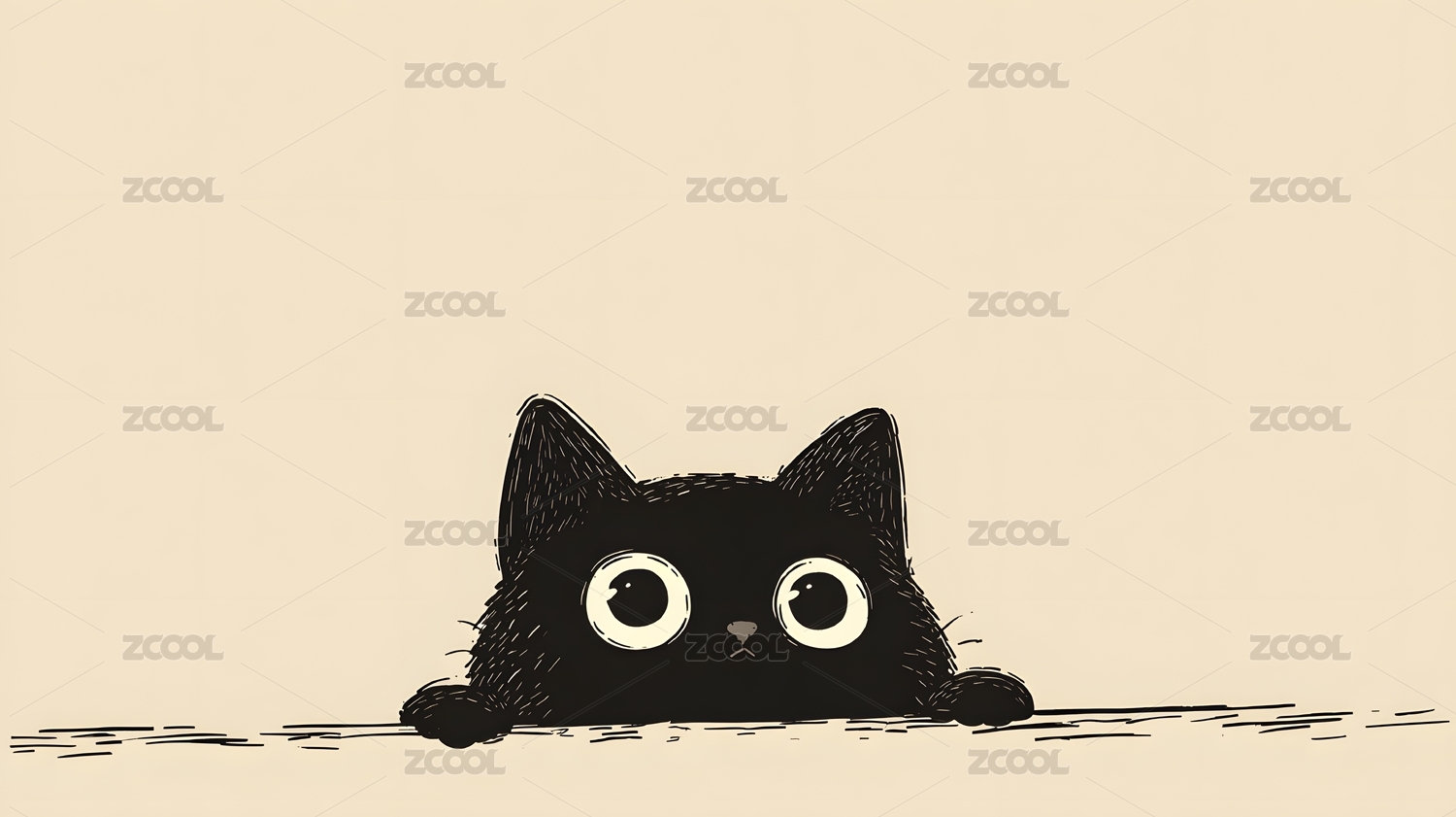 猫,背景,眼睛,黑猫,毛发,可爱,卡通,平面,爪子,好奇