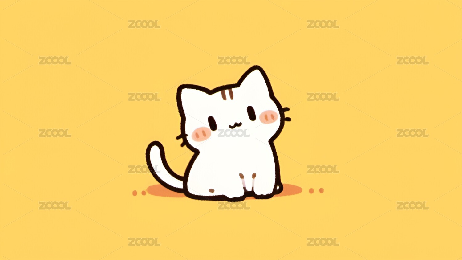 猫,背景,白色,线条,耳朵,猫咪,可爱,尾巴,表情,坐姿