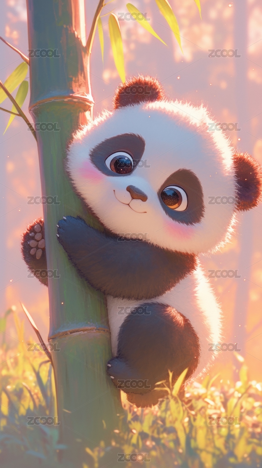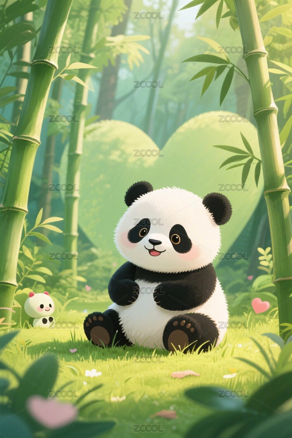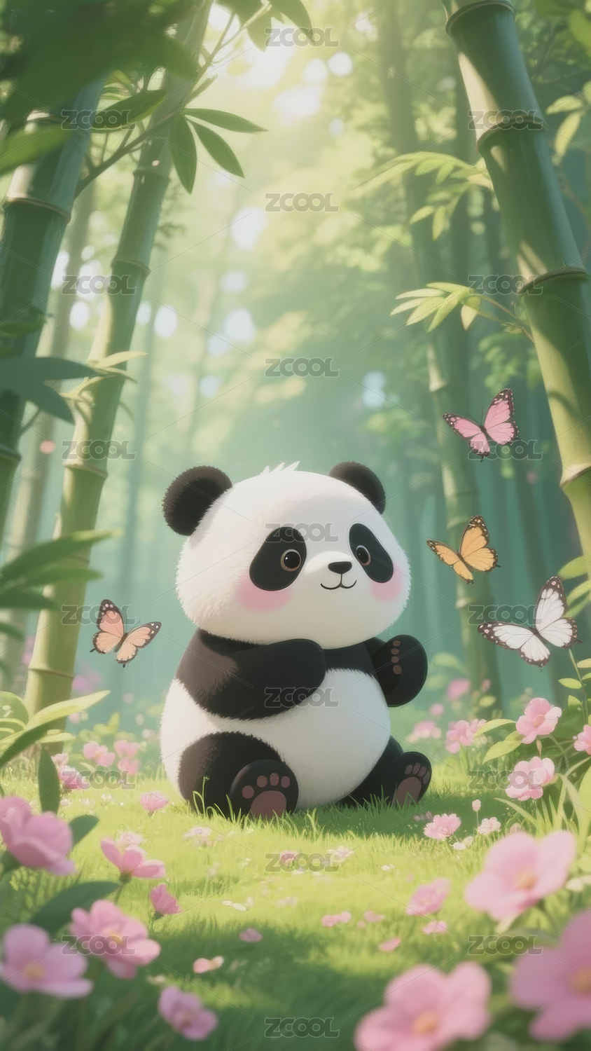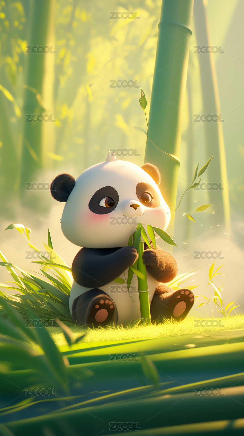 可爱治愈野外竹林的国宝大熊猫3D卡通插画
