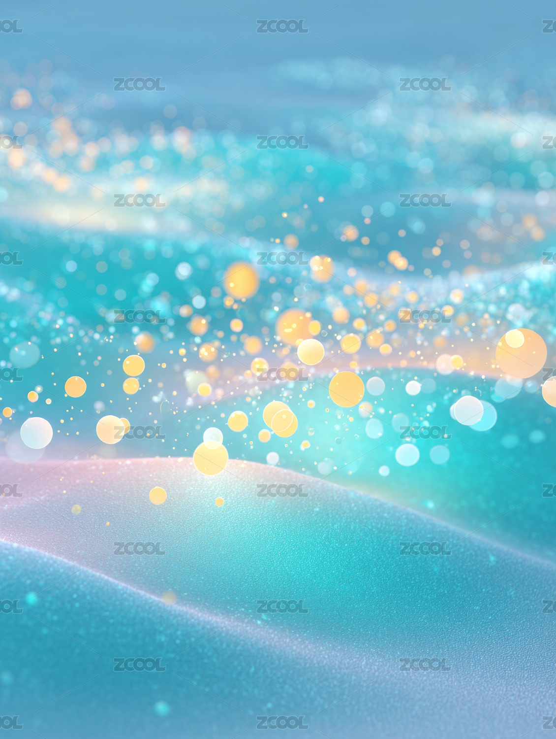 晶莹波浪与金色粒子的梦幻交织