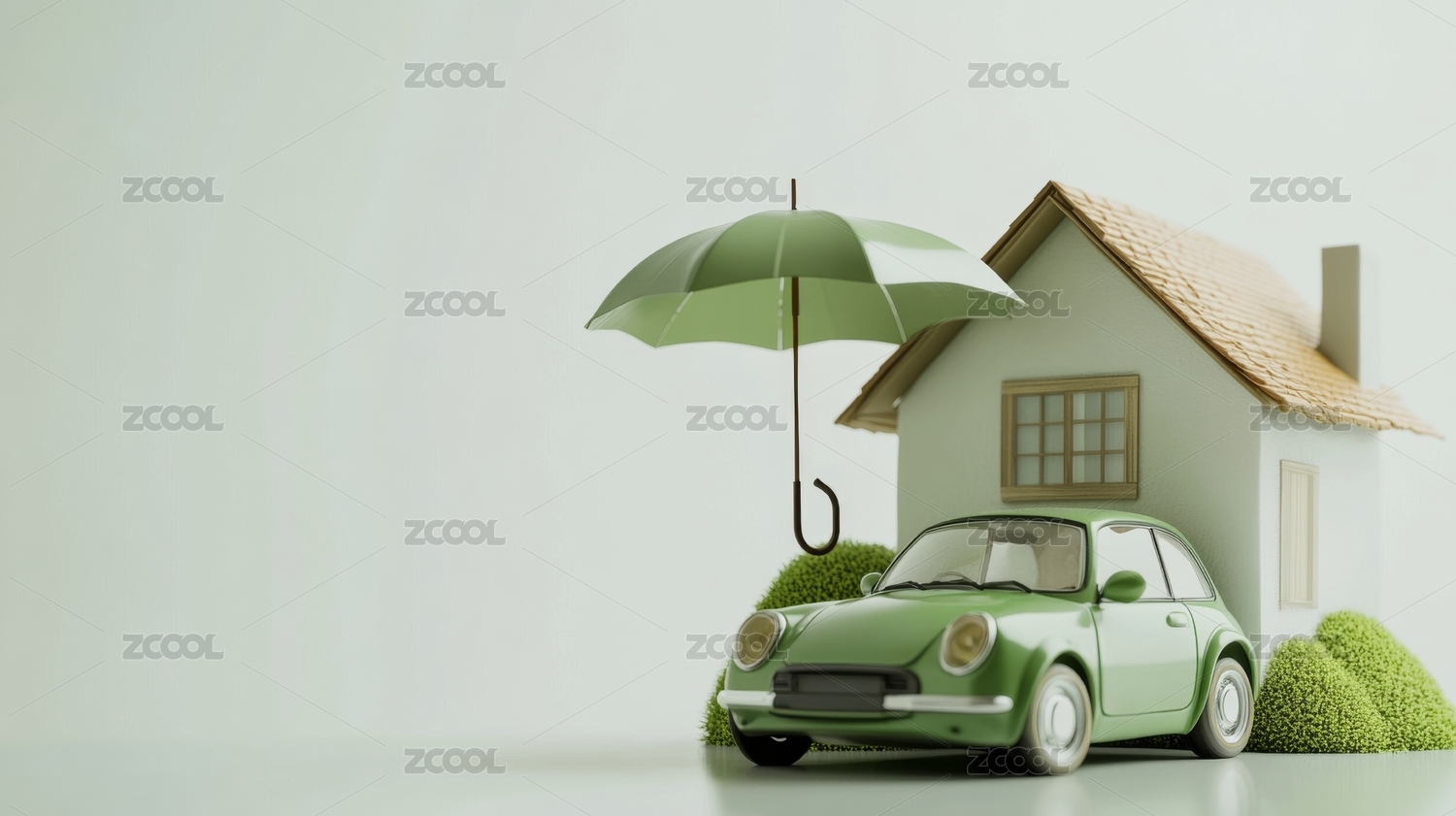 汽车出行出游房屋飞机保护伞平安健康出行交通保险概念