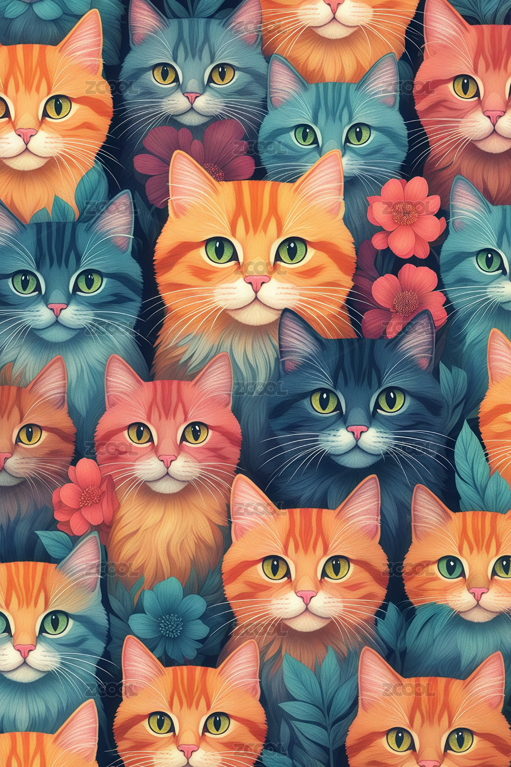 数码波西米亚猫猫图案装饰抽象图形海报背景