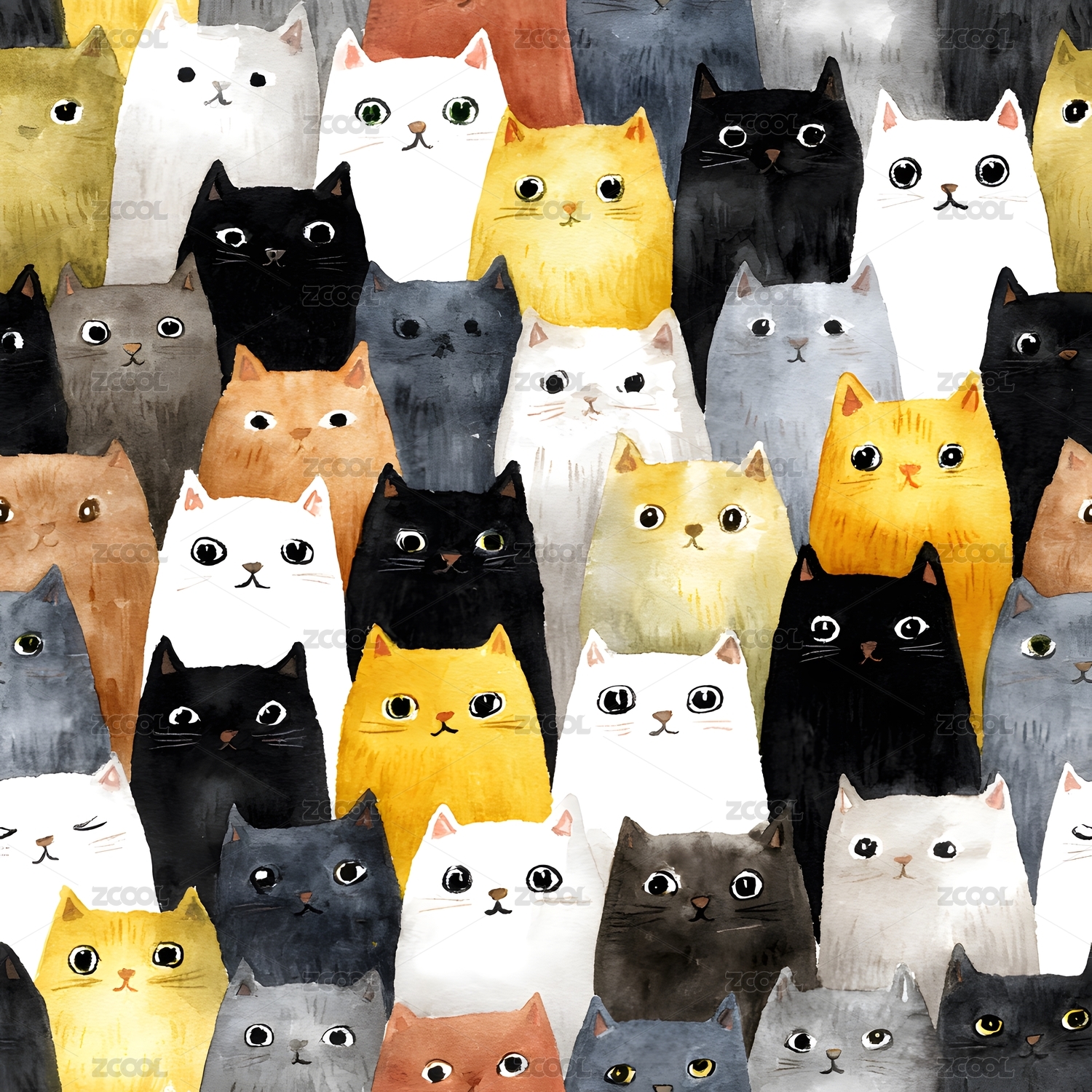 猫咪,叠叠乐,插画,壁纸,手机壳,设计,猫,卡通,群猫,萌宠