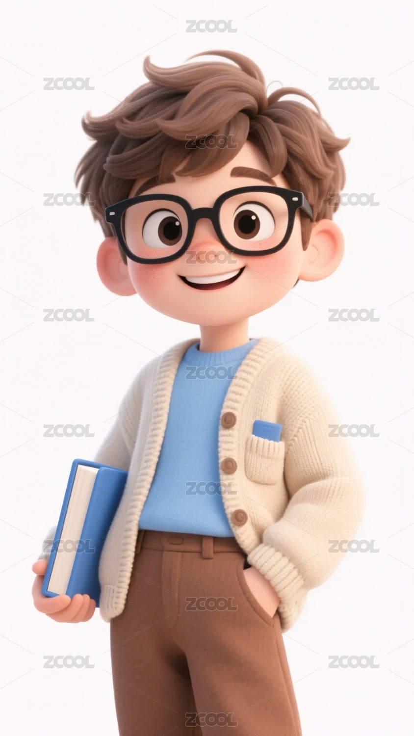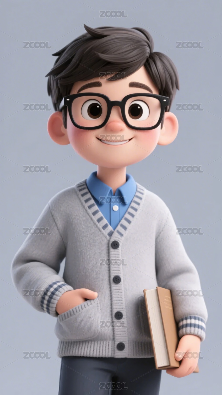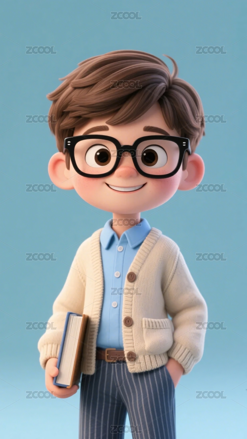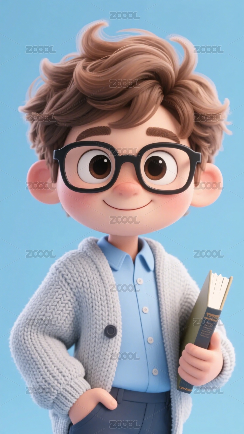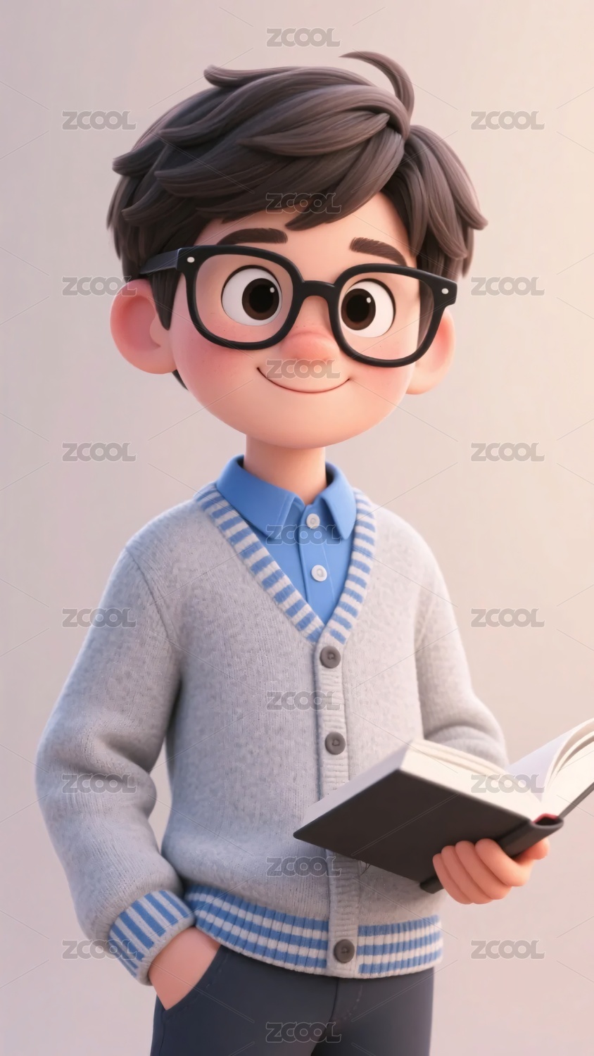 卡通男孩,眼镜,书籍,毛衣,插画,矢量