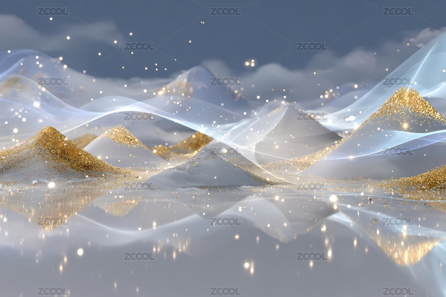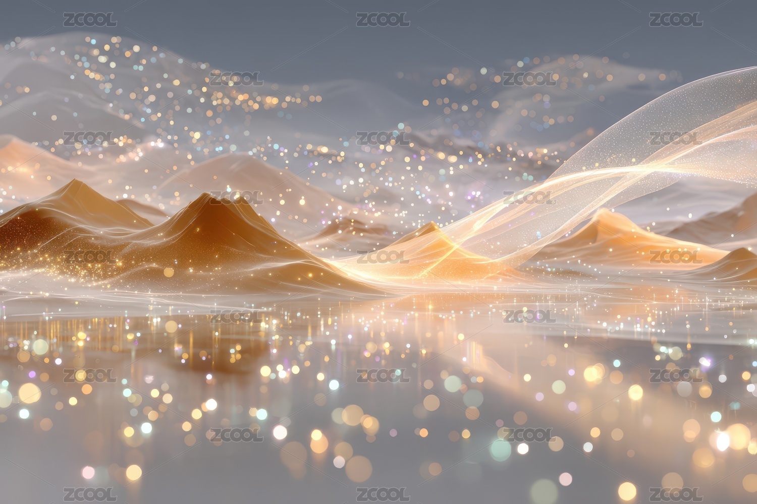 流光,闪耀,水面,倒影,星光,梦幻,金色,雪山
