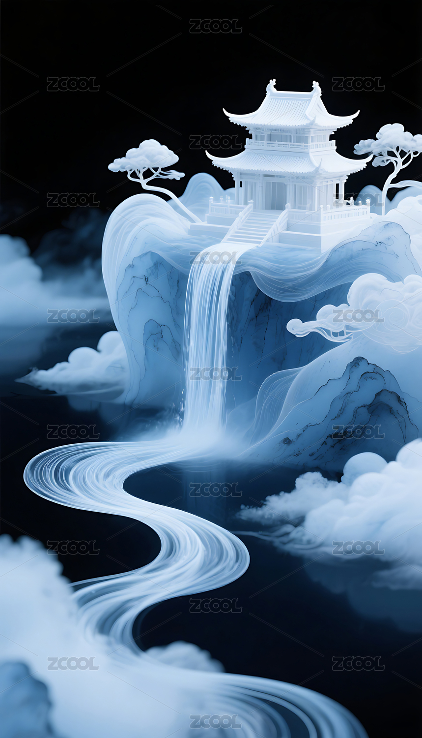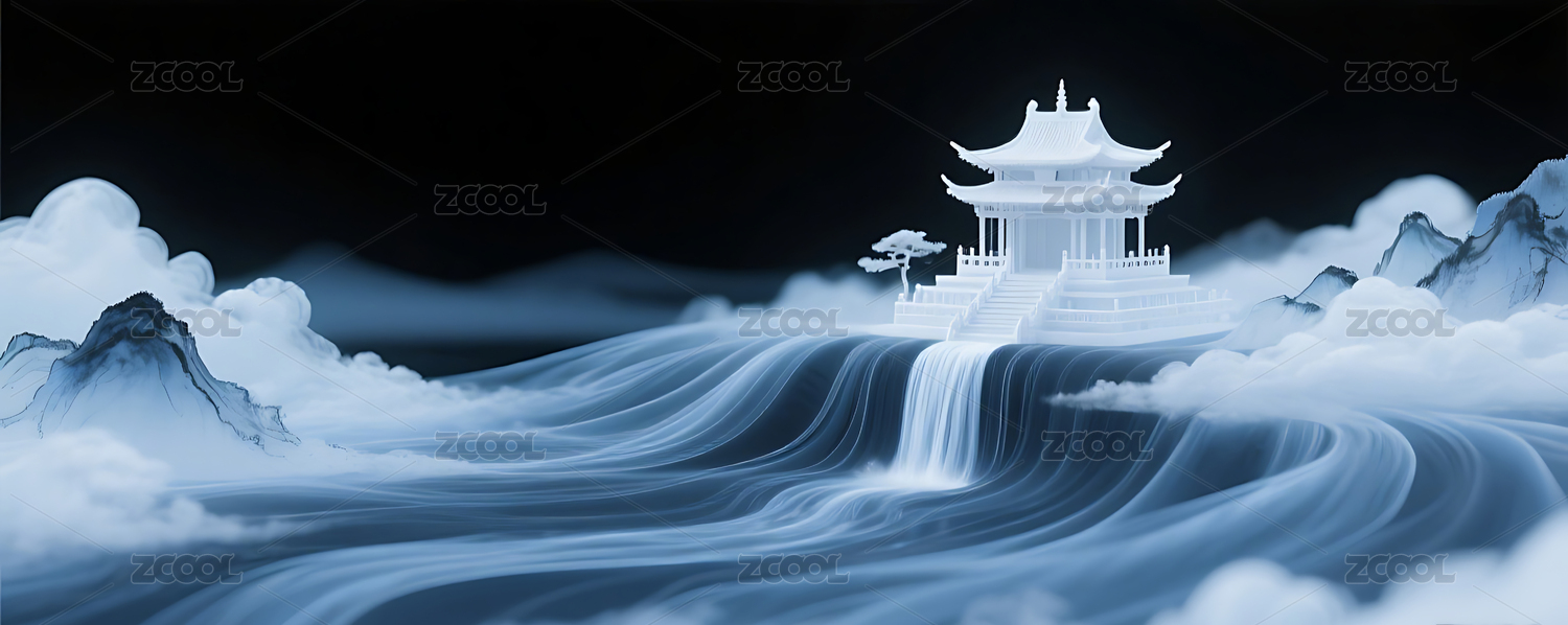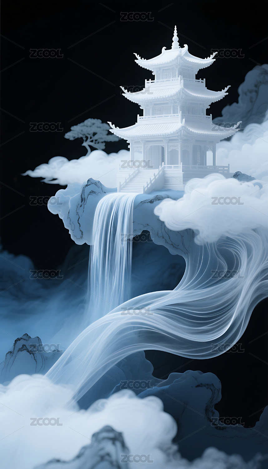 烟雾,黑色背景,飘渺,建筑,山水,艺术