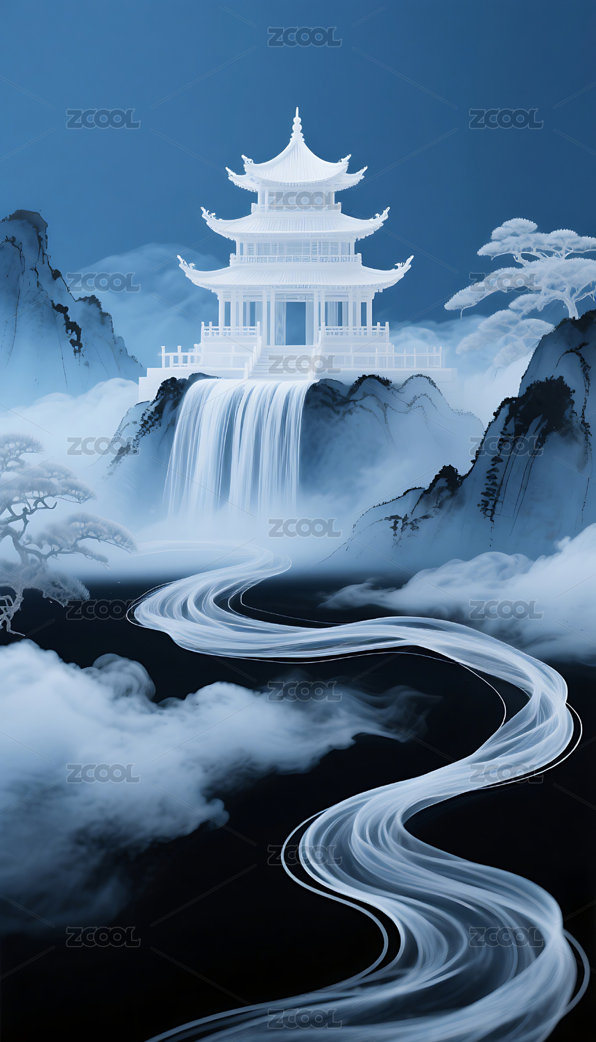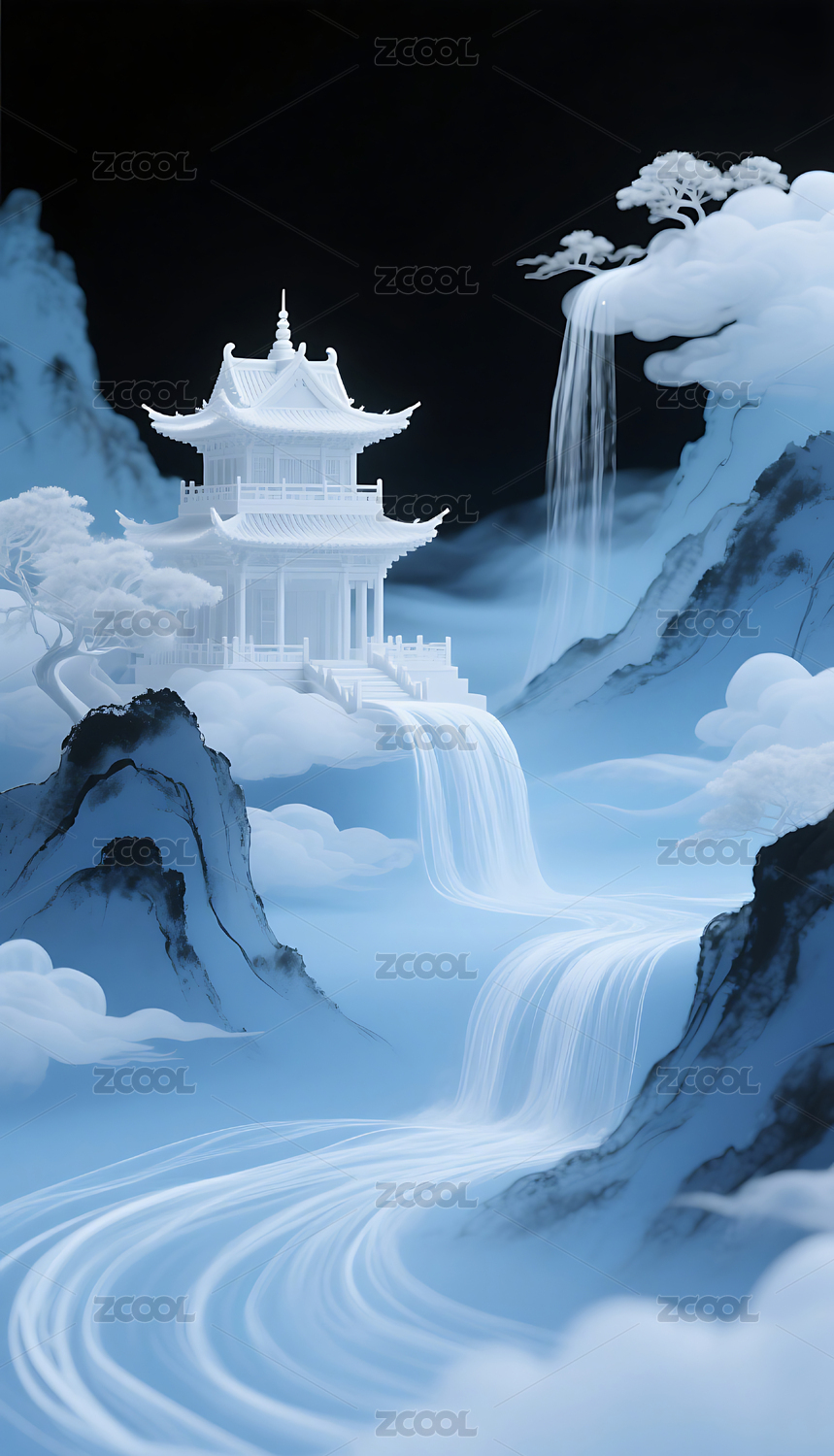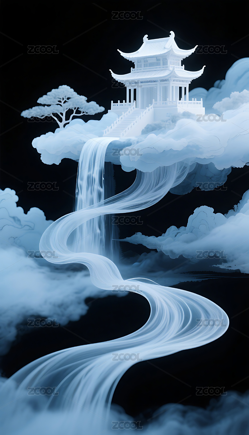 烟雾,黑色背景,飘渺,建筑,山水,艺术