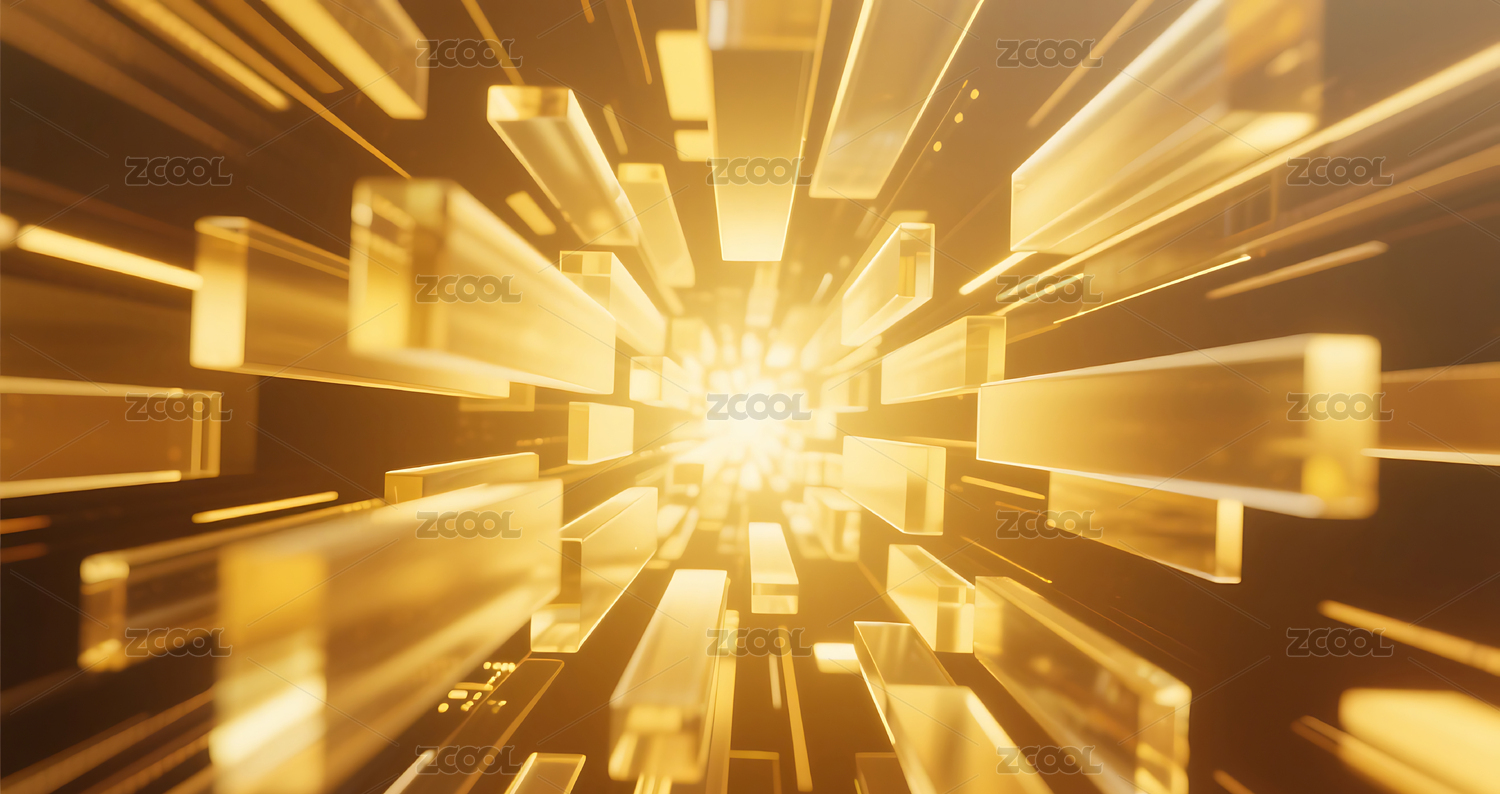 金色立体玻璃条块从中间向四周扩散背景