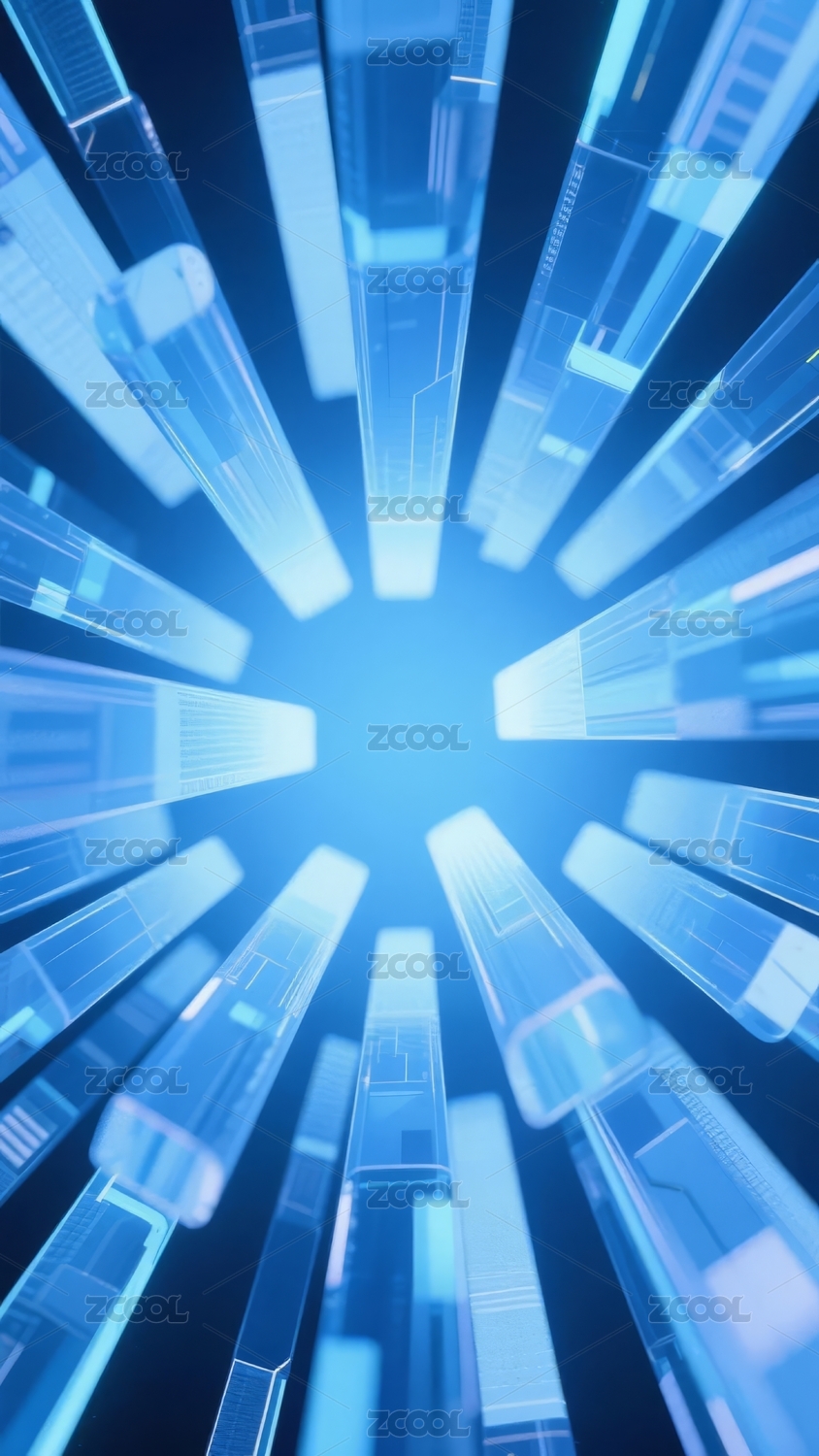 蓝金色立体玻璃条块从中间向四周扩散背景