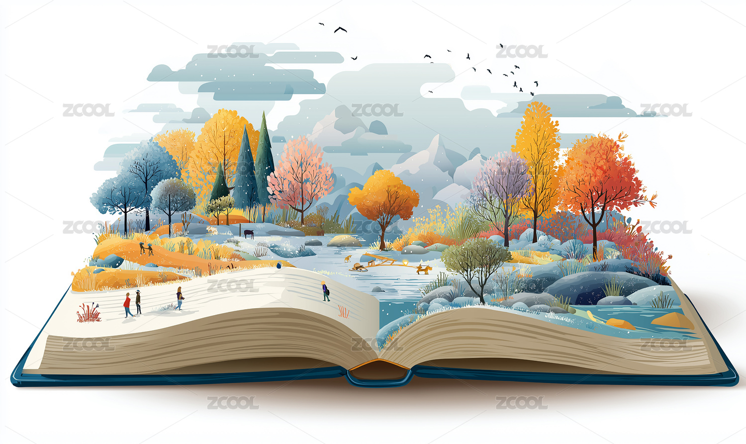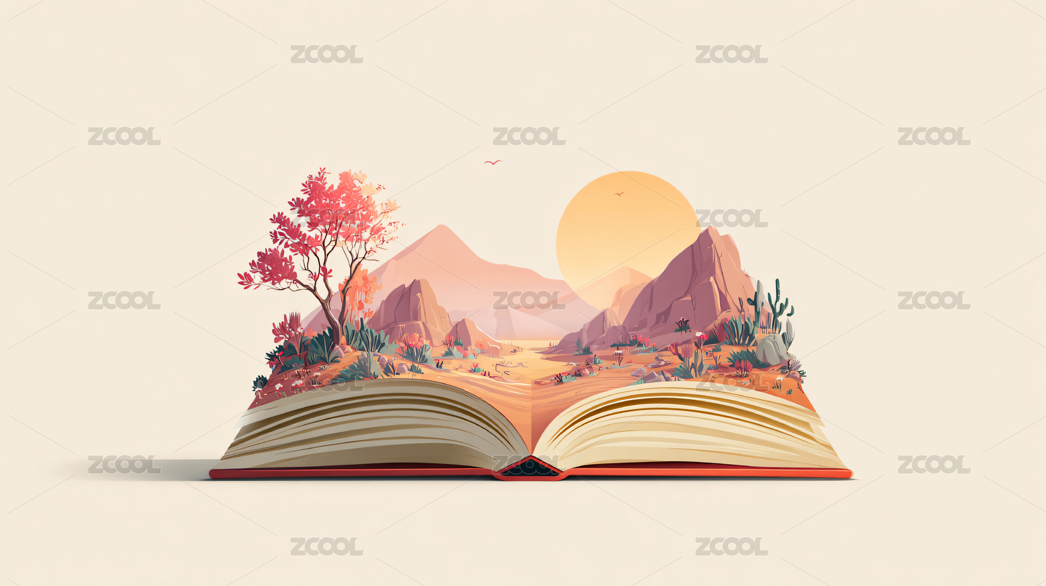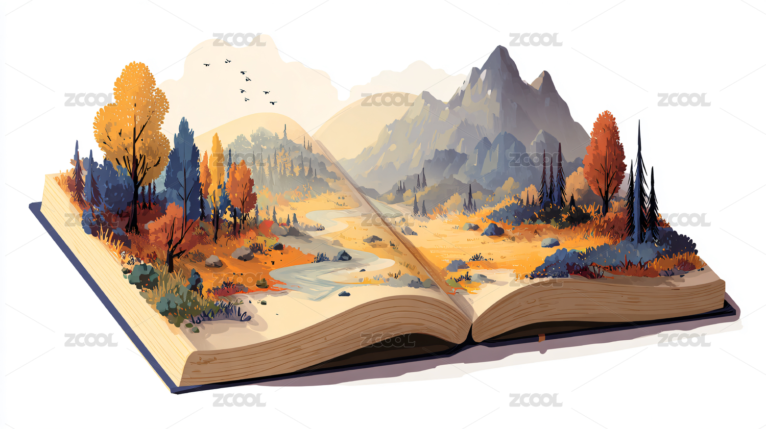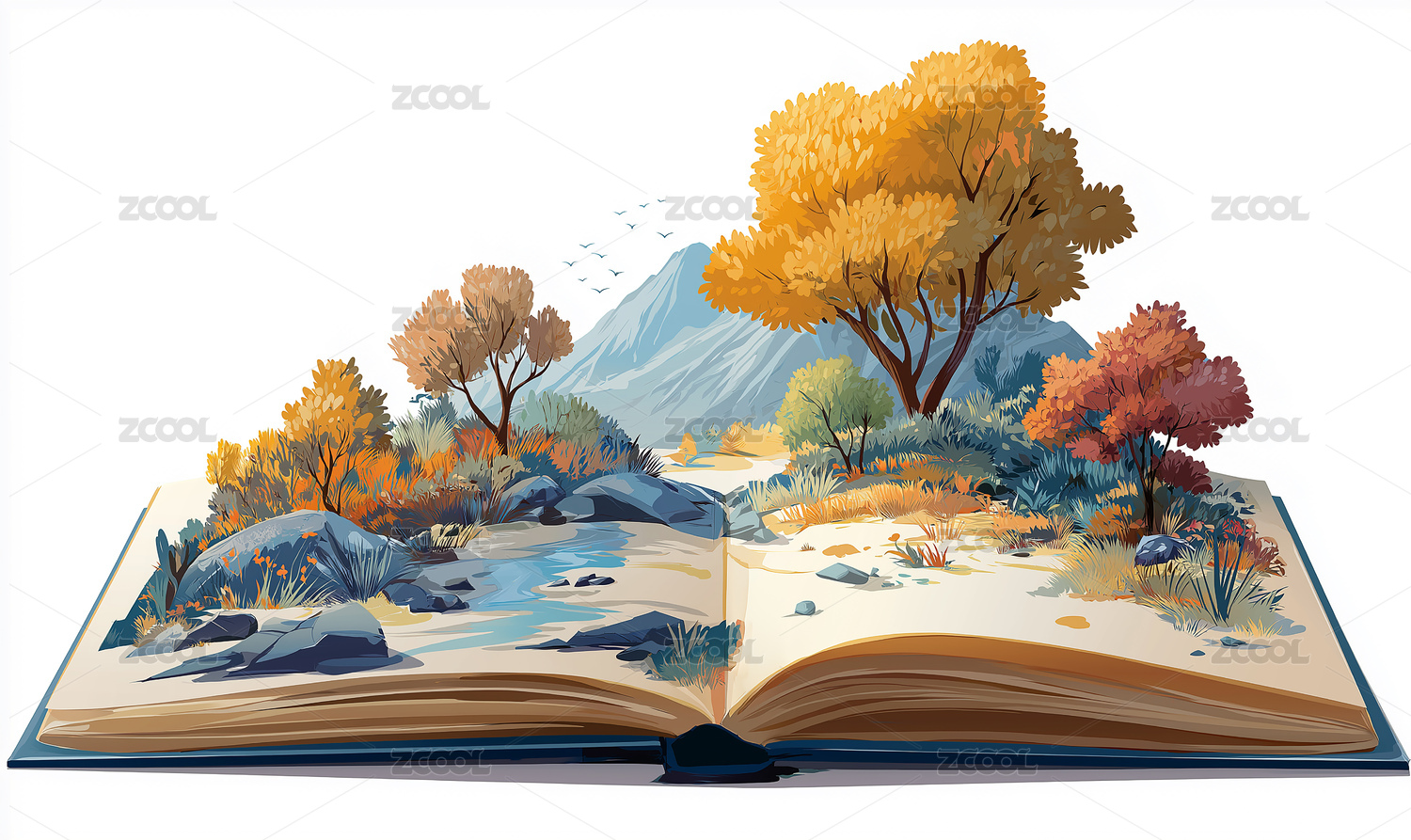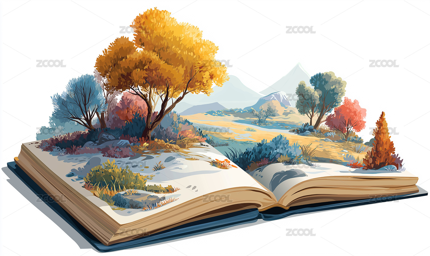 插画,书本,风景,创意,艺术,装饰,唯美,清新,画面,背景