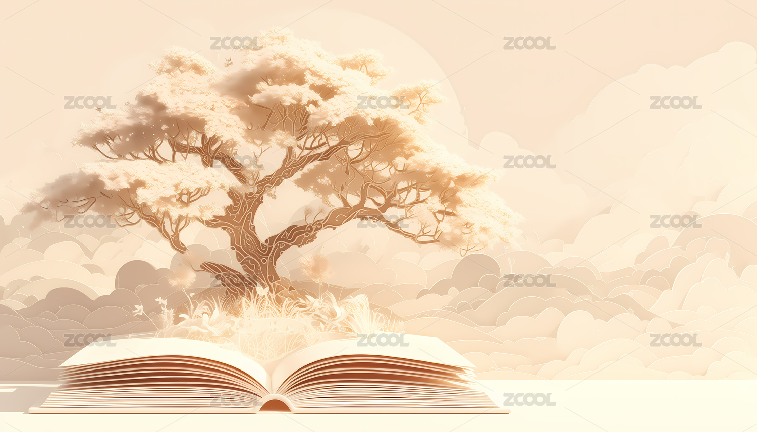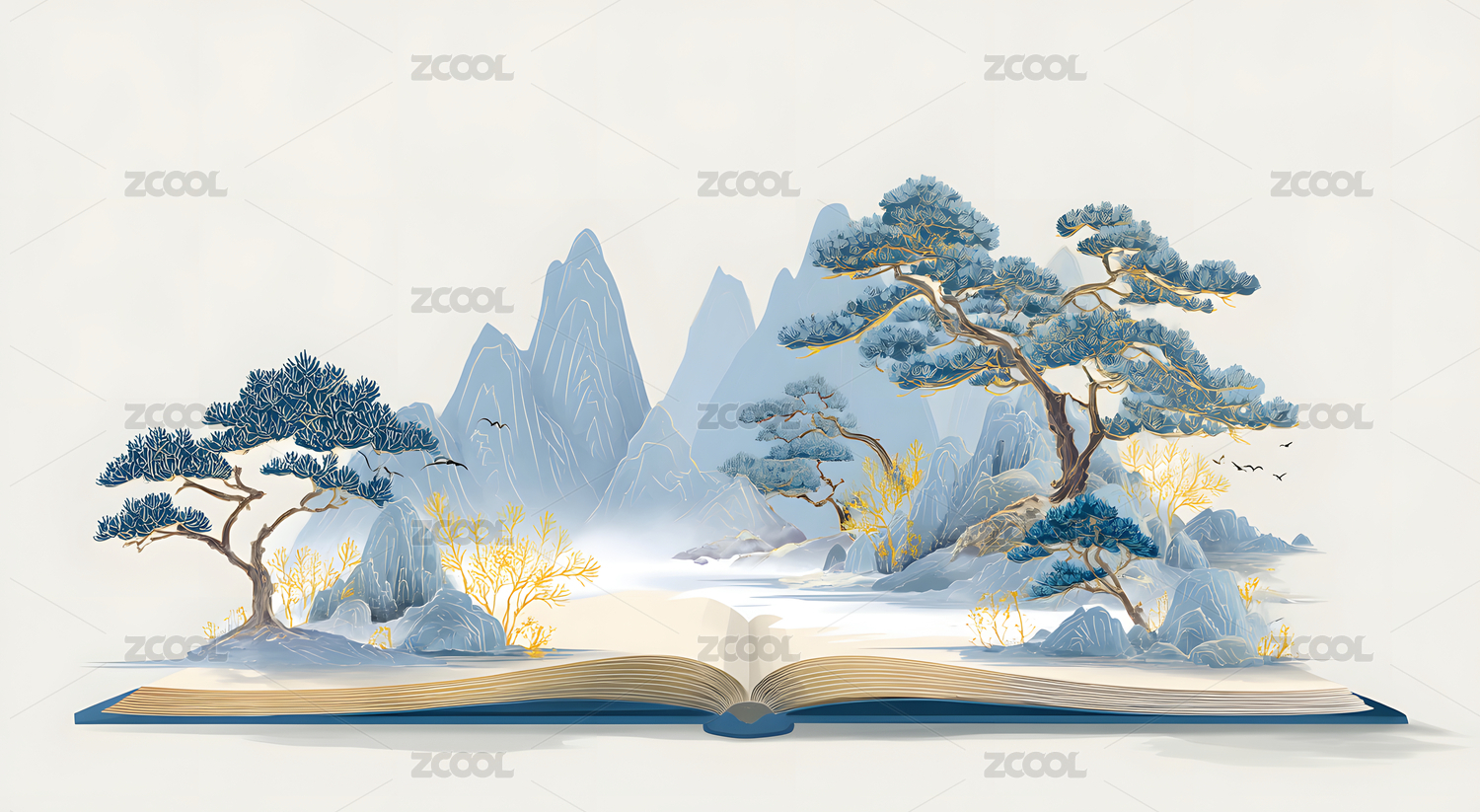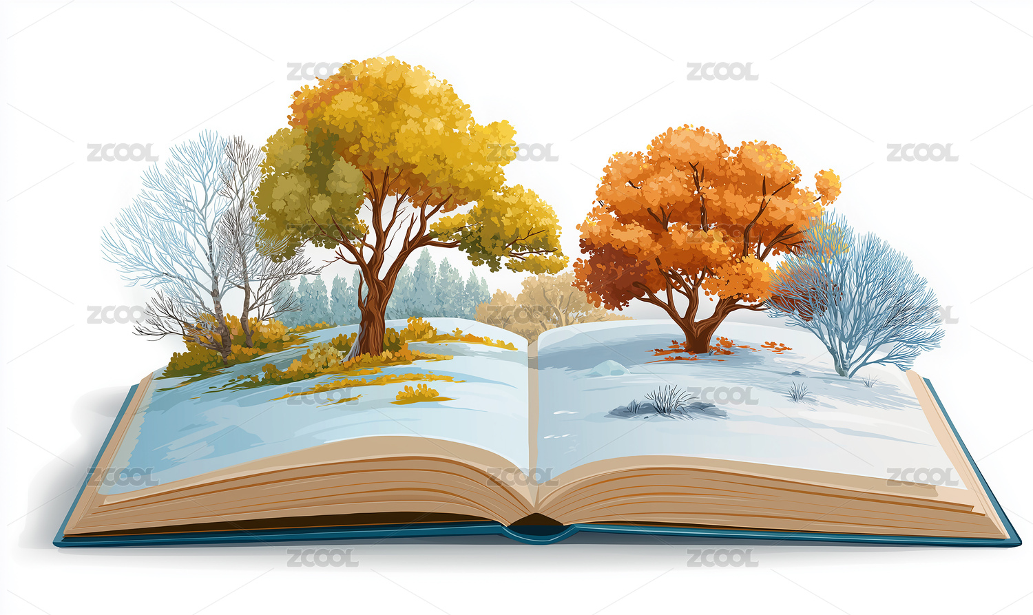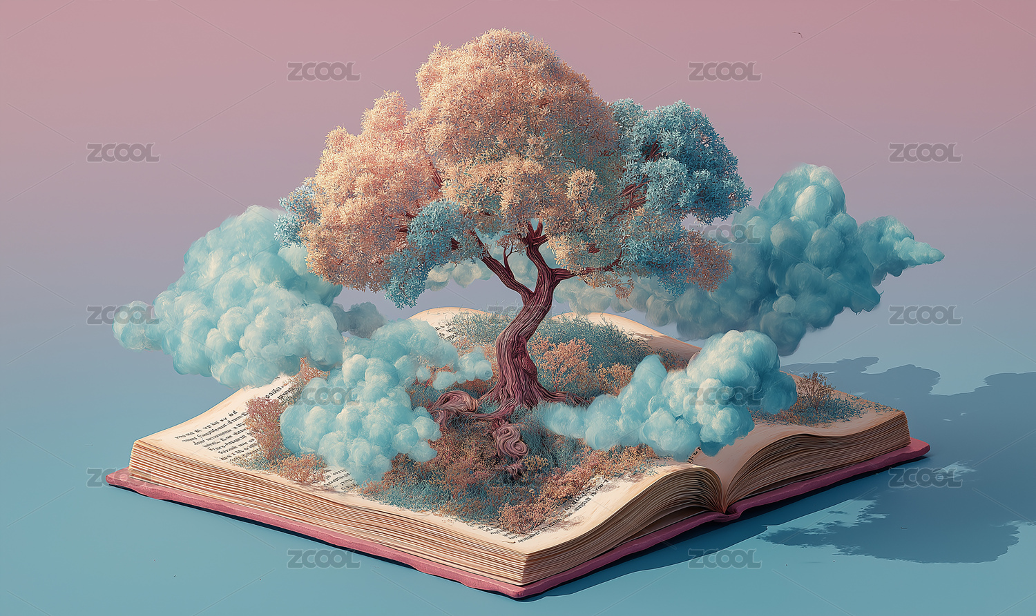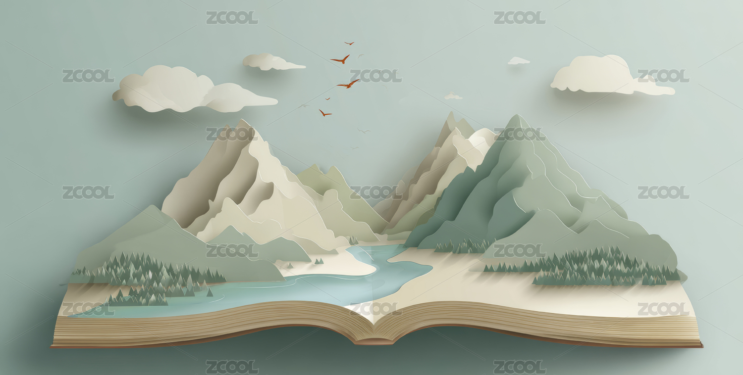 插画,书本,风景,创意,艺术,装饰,唯美,清新,画面,背景