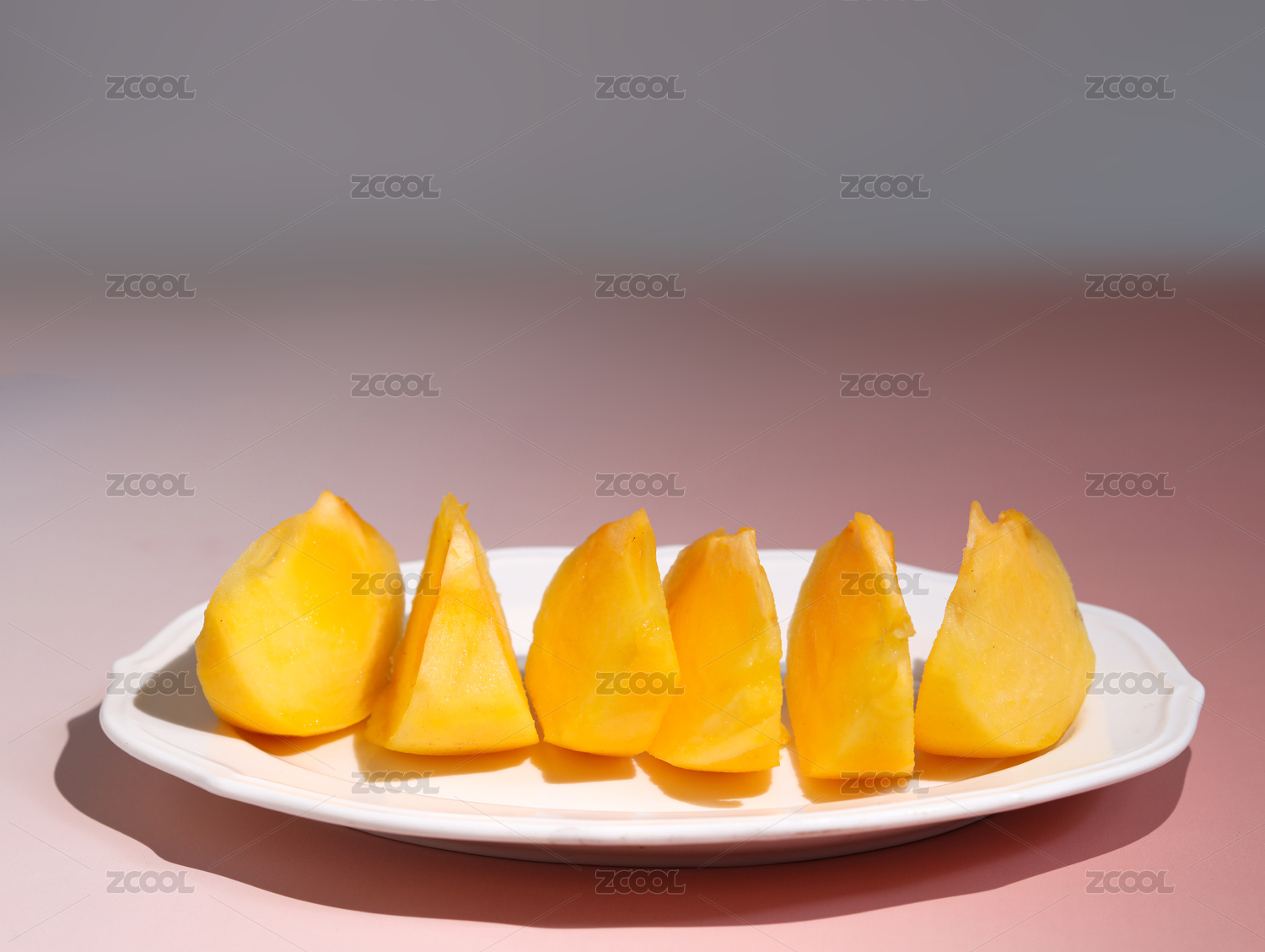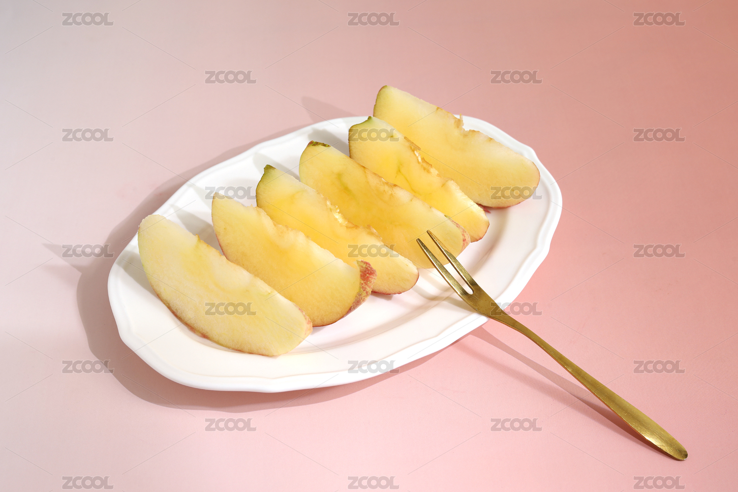 桌面盘子上切开的新鲜水果苹果果肉下午茶