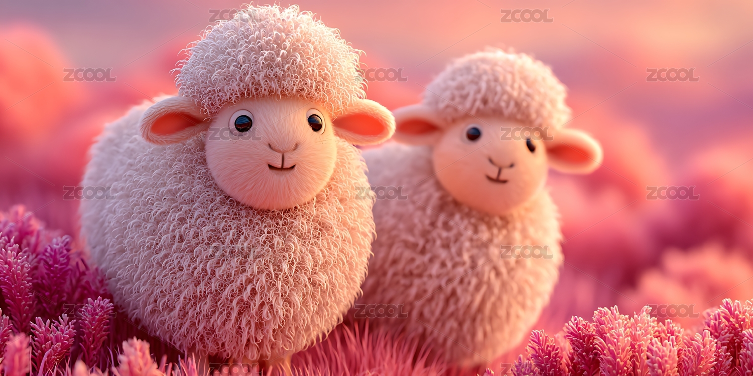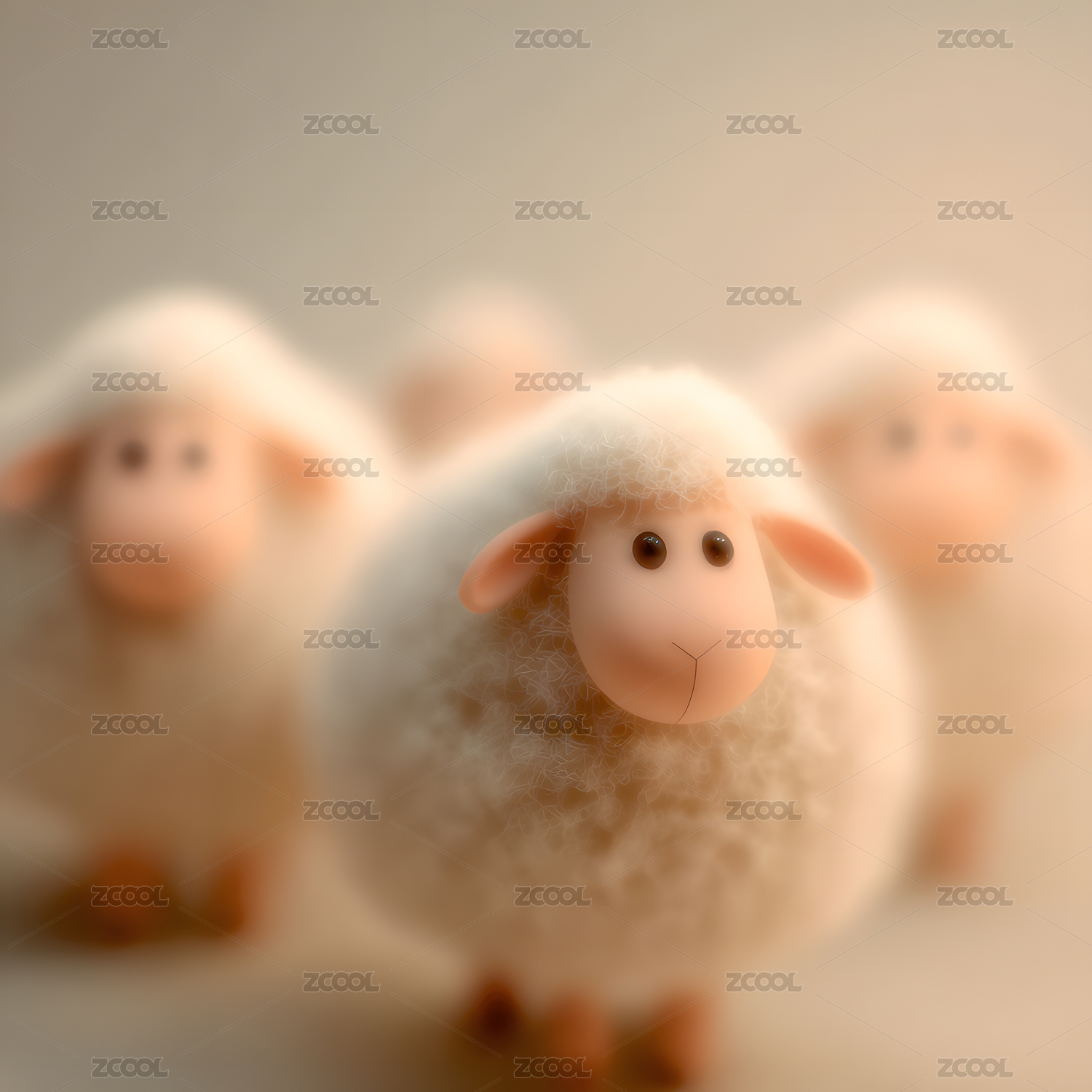 小羊,毛绒,彩色,可爱,萌趣,治愈,柔软,温馨,卡通,童趣