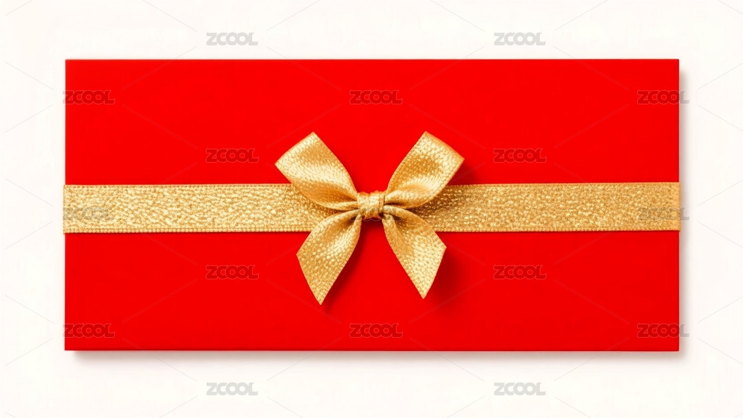 金色蝴蝶结与节日红色背景