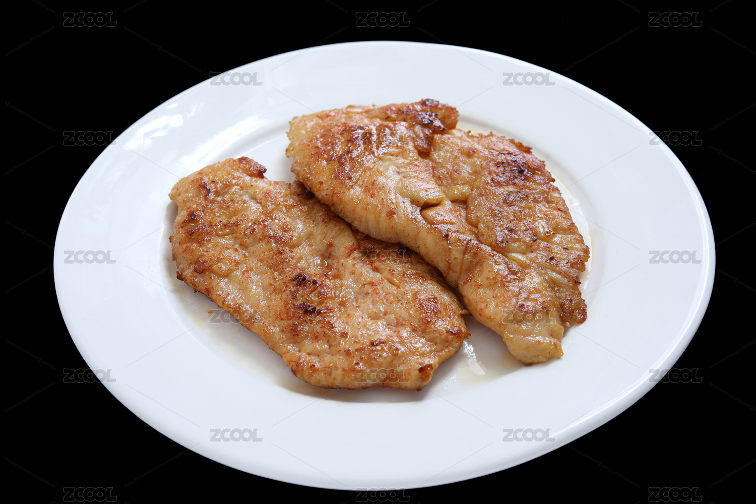 盘子上的香煎黑椒鸡排
