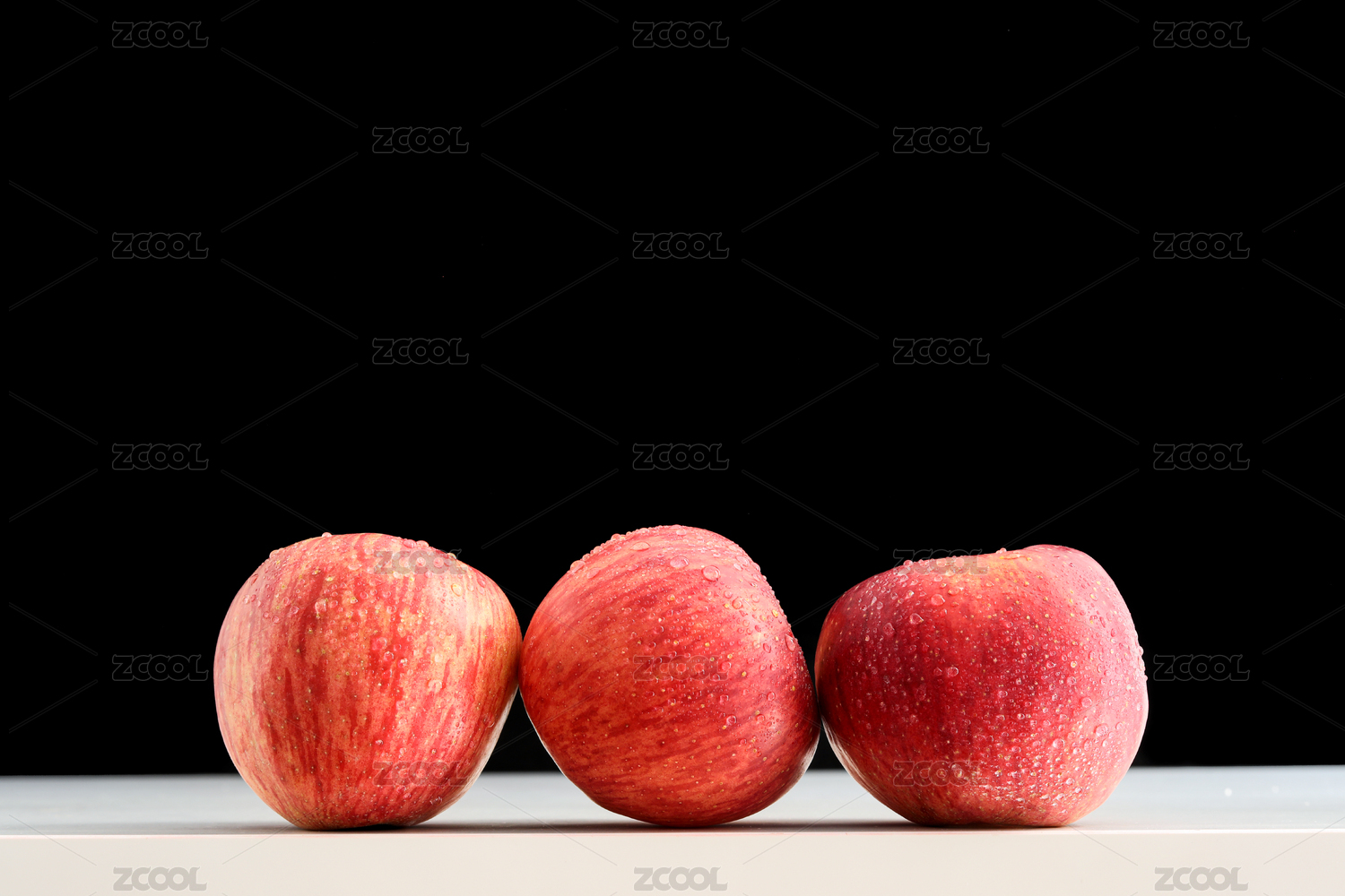 白色背景上摆放着的新鲜的红富士苹果
